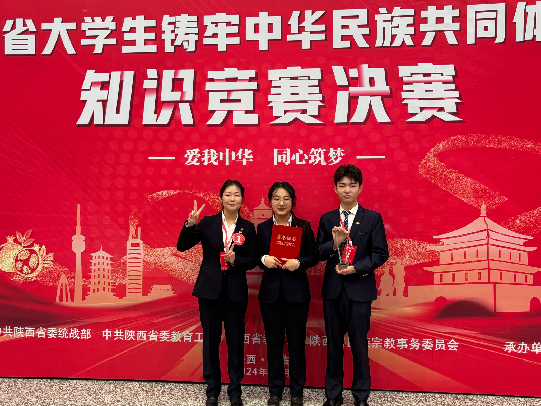 12月5日,由陜西省委統(tǒng)戰(zhàn)部、省委教育工委、省民宗委聯(lián)合主辦的陜西省大學(xué)生鑄牢中華民族共同體意識知識競賽決賽在長安大學(xué)舉行。我校由經(jīng)濟(jì)與管理學(xué)院郭子敬、張思涵和機(jī)電工程學(xué)院馬釗三位同學(xué)組成的“智勝先鋒”隊(duì)獲得團(tuán)體三等獎。該獎項(xiàng)是我校今年繼榮獲“第二屆陜西省高校大學(xué)生鑄牢中華民族共同體意識主題微宣講”比賽一等獎后在民族工作方面獲得的又一省級榮譽(yù)。