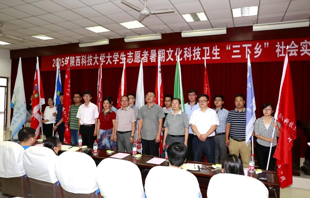 啟動儀式最后,與會領(lǐng)導(dǎo)為我?!叭锣l(xiāng)”社會實踐代表團隊授旗。至此,我校2015年大學(xué)生志愿者暑期文化科技衛(wèi)生“三下鄉(xiāng)”社會實踐活動正式啟動。