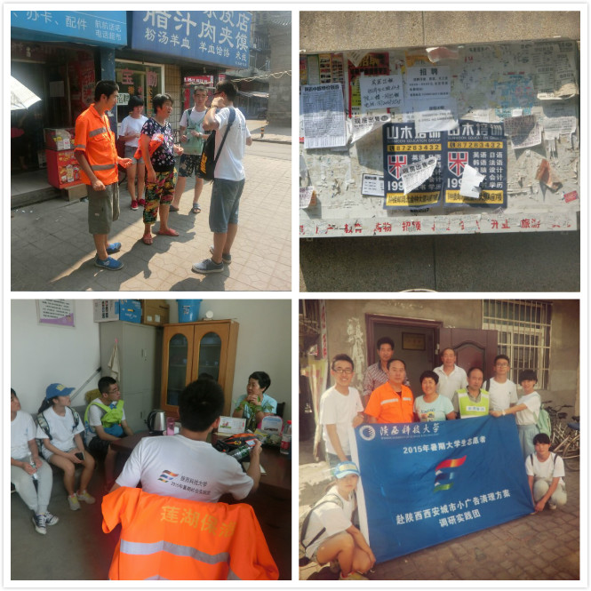 機電學(xué)院西安市城市廣告清理方案調(diào)研團以“科技創(chuàng)新、服務(wù)社會”為宗旨,以“科技與人文結(jié)合,專業(yè)與社會接軌”為理念,旨在為城市廣告清理者帶來便利,還城市一個良好形象。實踐團以廣告清除機的制作為目的,沿西安地鐵一、二號線附近各主要街道輻射狀展開調(diào)研,在實地調(diào)研、采集信息同時,通過采訪環(huán)衛(wèi)工人、在環(huán)衛(wèi)處座談、尋訪街道辦等形式,全面深入了解當(dāng)前城市廣告清理現(xiàn)狀。實踐團將每天的調(diào)研結(jié)果進行梳理總結(jié),針對具體的紙張規(guī)格、粘膠性質(zhì)和清除的難易程度等關(guān)鍵環(huán)節(jié),對前期研發(fā)的專利設(shè)備——便攜式垃圾廣告清除機進行功能改進與完善,通過緊密聯(lián)系社會需求、發(fā)揮專業(yè)優(yōu)勢,用科技創(chuàng)新成果服務(wù)社會發(fā)展。