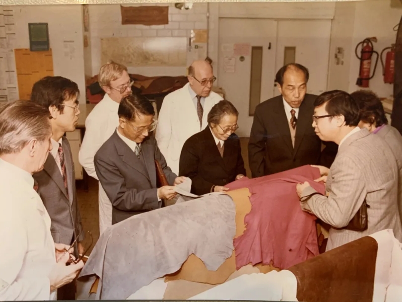 后來,輕工部又交給我們一個項目,就是“漢口路山羊皮革”的研究。漢口路位于上海黃浦區(qū),是當(dāng)時中國重要的皮革貿(mào)易中心,漢口路山羊皮是我國優(yōu)質(zhì)的皮料,以細(xì)膩柔軟著稱,制成的皮衣都是高品質(zhì)的,出口到西歐國家,在上世紀(jì)80年代為國家出口創(chuàng)匯做出重要貢獻(xiàn)。但由于鞣制技術(shù)的限制,生產(chǎn)的皮革質(zhì)量參差不齊、達(dá)標(biāo)率不高,成為當(dāng)時的“卡脖子”技術(shù)。潘津生教授開啟國內(nèi)皮革組織學(xué)研究的先河,將皮革組織學(xué)研究應(yīng)用于漢口路山羊皮生產(chǎn)全過程,從皮料預(yù)處理、鞣制工藝優(yōu)化、復(fù)鞣與加脂、染整、環(huán)保技術(shù)等方面加強質(zhì)量控制與檢測,顯著提升了漢口路山羊皮的質(zhì)量和在國際市場的競爭力。舉個例子,在脫毛環(huán)節(jié),由于北方的山羊皮粗一些,有時候羊毛雖然脫掉了,但是毛根還在皮里面,生產(chǎn)出來的皮革就會不達(dá)標(biāo)。我們通過改善工藝,實現(xiàn)在不影響皮纖維的前提下,使毛根順利脫落,徹底干凈地脫毛。整飾環(huán)節(jié)也一樣,涂飾劑的滲透程度影響皮革的物化性能,滲透的太淺容易掉漿,滲透太深皮又會發(fā)硬,我們通過觀察皮革的微觀組織結(jié)構(gòu),科學(xué)給出涂飾劑加入的量和加入的時間,大大提高了加工工藝。當(dāng)時的研究過程特別辛苦,潘老師已經(jīng)七十多歲了,仍然非常積極熱情地沉浸其中,經(jīng)常在實驗室里一呆就是幾個小時;另外還有魏世林和我們其他幾位青年教師,與山東、河南一些企事業(yè)單位的合作伙伴,大家的思想比較統(tǒng)一,都一心撲在這個項目上。