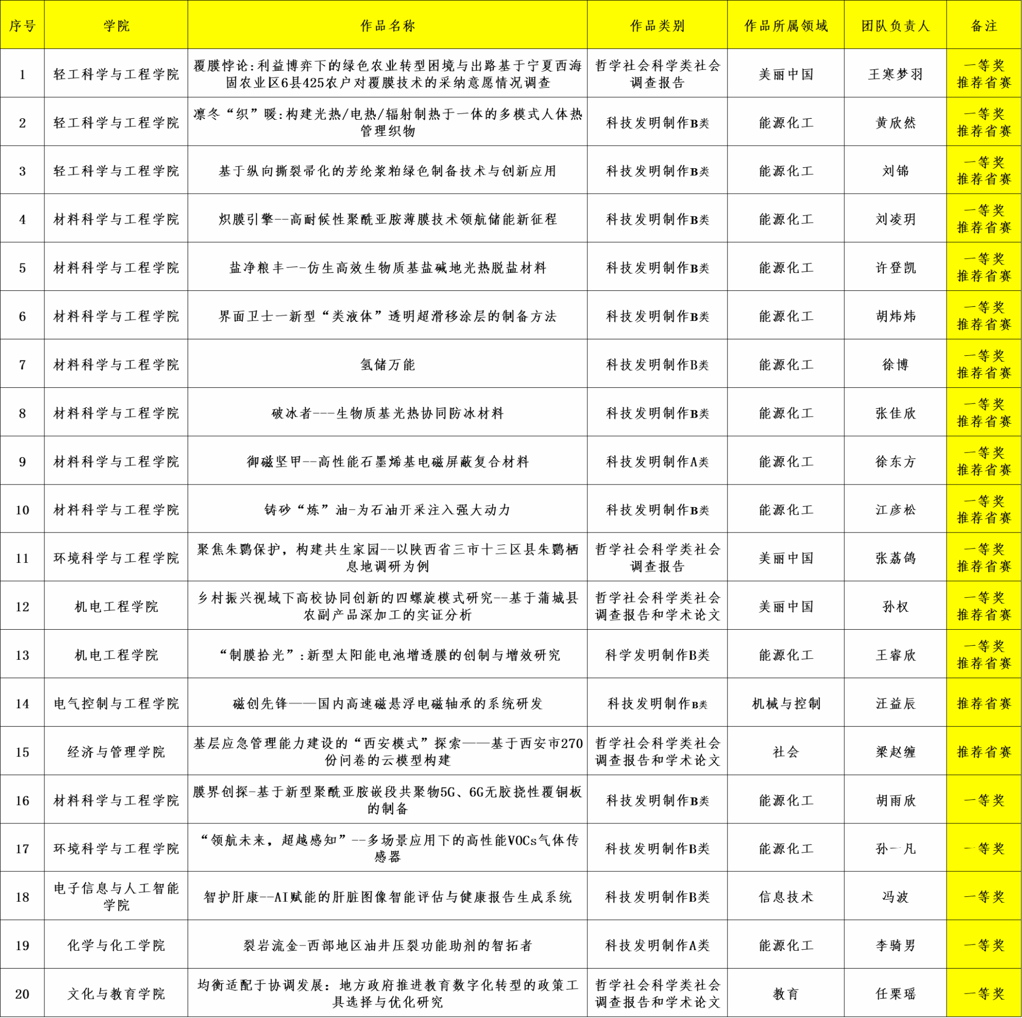 附:陜西科技大學第十七屆“復興杯”大學生課外學術作品競賽一等獎及推薦省賽項目名單
