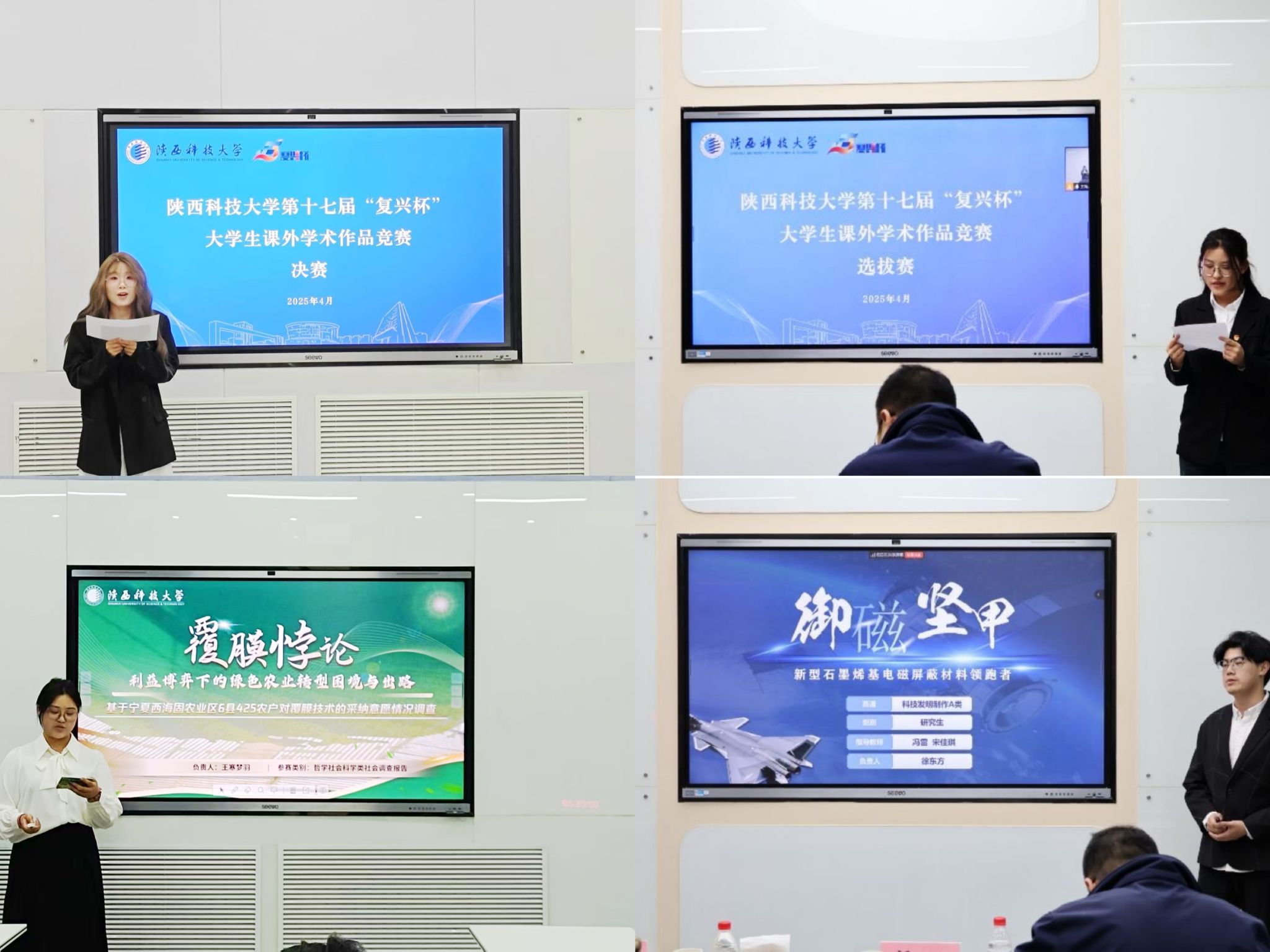 近日,我校第十七屆“復興杯”大學生科技創(chuàng)新系列賽事(大學生創(chuàng)業(yè)計劃競賽、大學生課外學術科技作品競賽)及第十五屆“挑戰(zhàn)杯”陜汽集團陜西省大學生課外學術科技作品競賽校級選拔賽賽程圓滿結束。本次賽事由校團委聯(lián)合學工部、研究生院(研工部)、教務處、科技處、實驗室與設備管理處、校友總會、招生辦、校學生會、校研究生會等10個單位共同主辦,并組成大賽組委會,材料科學與工程學院、經(jīng)濟與管理學院負責大賽承辦工作。