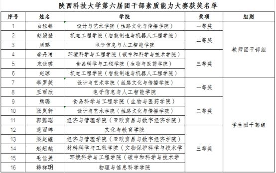 通過理論測(cè)試、微團(tuán)課講授、現(xiàn)場(chǎng)案例分析等環(huán)節(jié),共評(píng)選出教師團(tuán)干組和學(xué)生團(tuán)干組一二三等獎(jiǎng)共16名,具體名單如下: