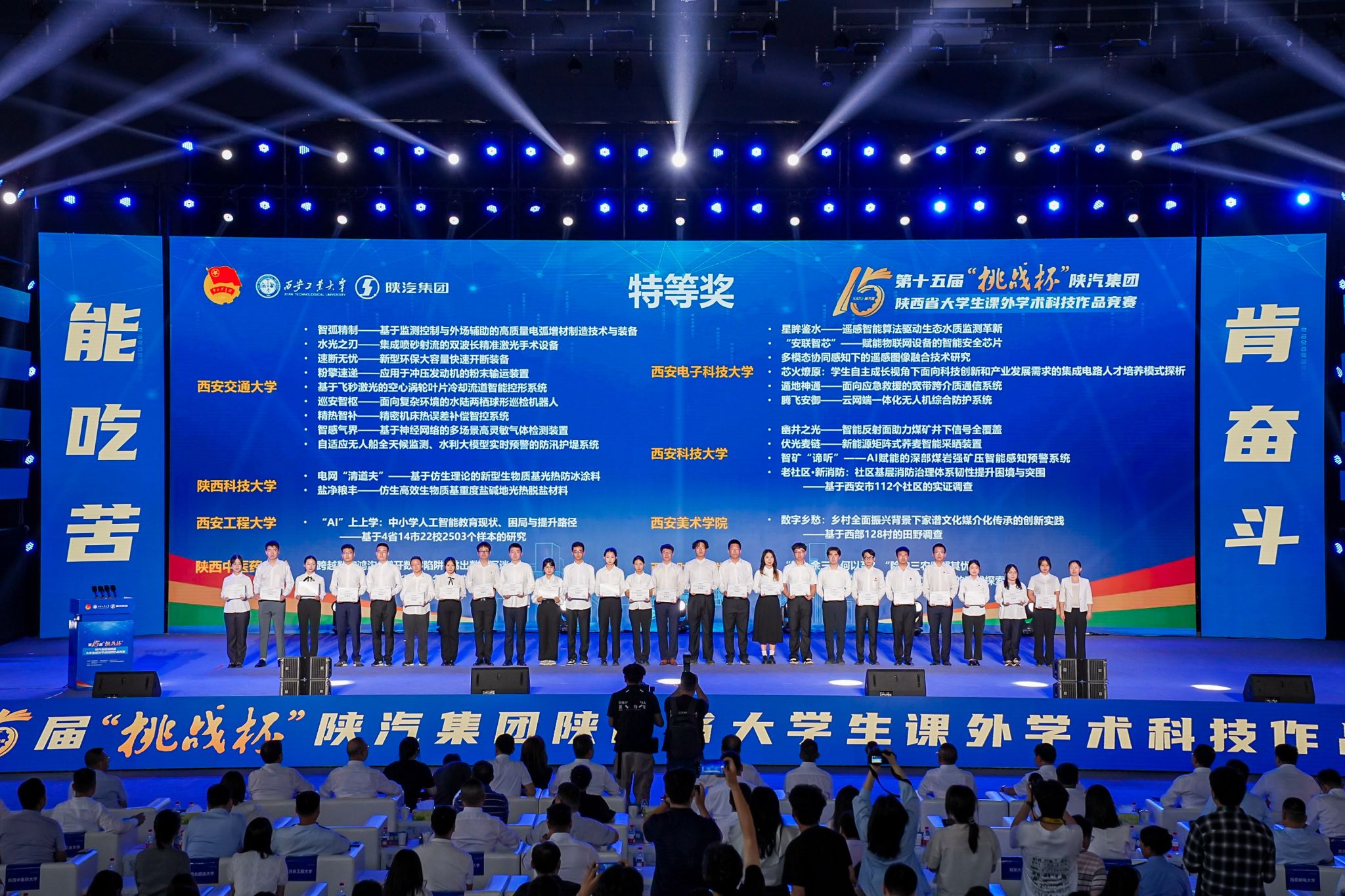 5月24日下午,由共青團(tuán)陜西省委、中共陜西省委教育工委、陜西省科學(xué)技術(shù)協(xié)會、陜西省社會科學(xué)院、陜西省學(xué)生聯(lián)合會、陜西省西咸新區(qū)開發(fā)建設(shè)管理委員會聯(lián)合主辦,西安工業(yè)大學(xué)承辦的第十五屆“挑戰(zhàn)杯”陜汽集團(tuán)陜西省大學(xué)生課外學(xué)術(shù)科技作品競賽的閉幕式暨頒獎儀式在西安工業(yè)大學(xué)(未央校區(qū))舉辦。陜西科技大學(xué)項目獲特等獎2項,一等獎3項,二等獎5項,三等獎2項。學(xué)校榮獲“優(yōu)秀組織獎”。