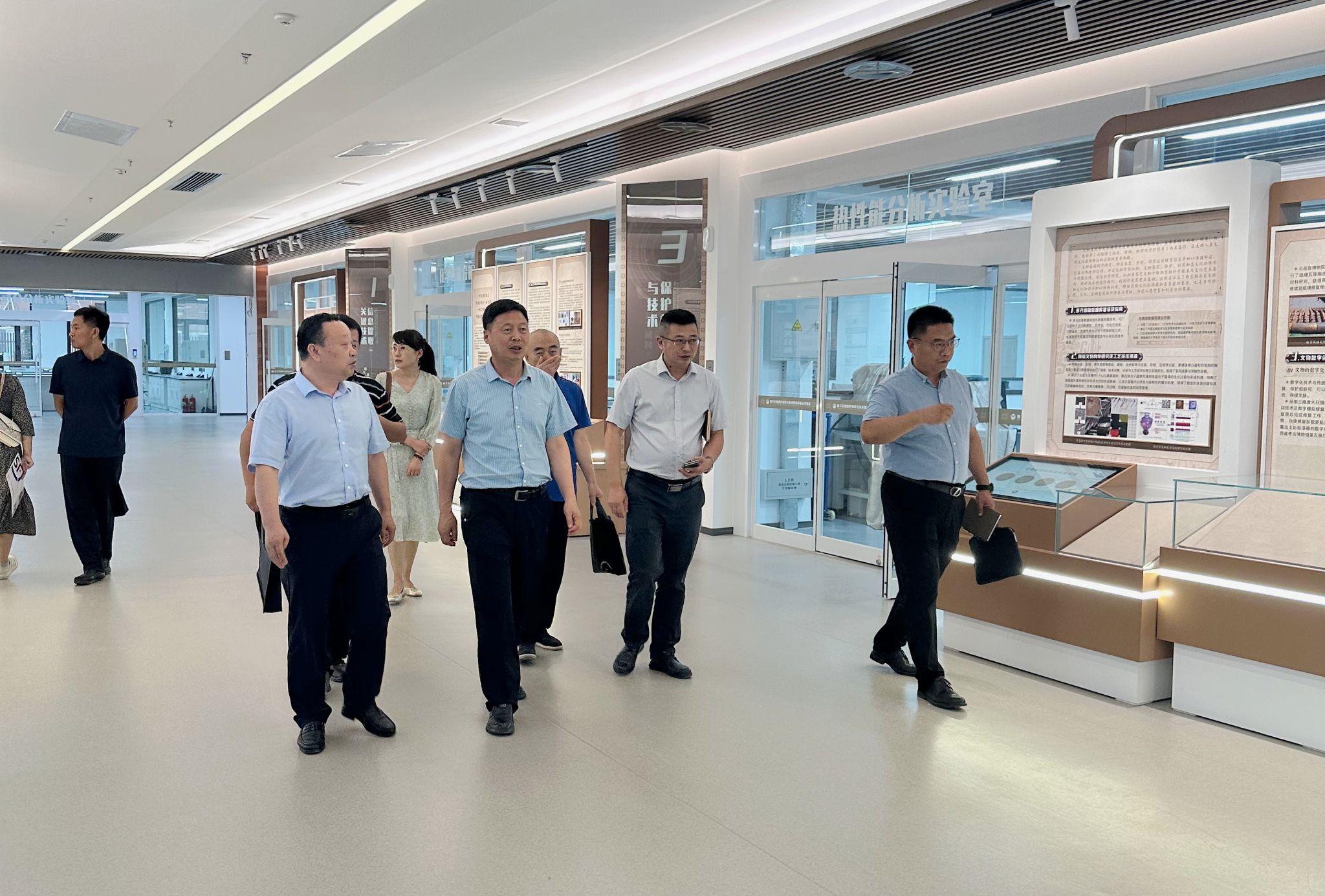 座談結(jié)束后,徐富權(quán)一行深入材料學(xué)院實(shí)地考察,先后走訪(fǎng)教育部重點(diǎn)實(shí)驗(yàn)室與“職工小家”。在文物保護(hù)實(shí)驗(yàn)室,調(diào)研組詳細(xì)聽(tīng)取平臺(tái)建設(shè)歷程、重大科研成果及學(xué)術(shù)服務(wù)支撐等情況介紹,高度肯定其在學(xué)科建設(shè)與人才培育中的引擎作用;在“職工小家”,通過(guò)實(shí)地察看功能布局、查閱活動(dòng)臺(tái)賬,對(duì)場(chǎng)地的溫馨環(huán)境與精準(zhǔn)服務(wù)教職工需求的運(yùn)營(yíng)模式表示贊許。