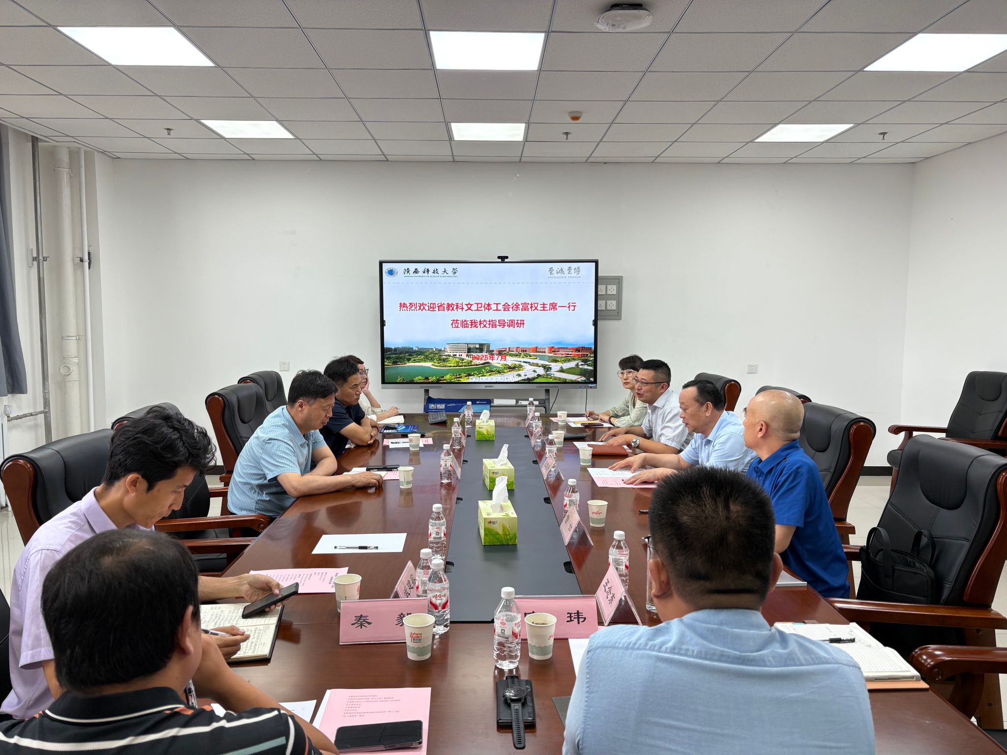 7月8日上午,陜西省教科文衛(wèi)體工會(huì)主席、二級(jí)巡視員徐富權(quán)一行蒞臨我校,開(kāi)展工會(huì)工作專(zhuān)題調(diào)研,并同步啟動(dòng)“送清涼”慰問(wèn)活動(dòng)。黨委副書(shū)記王道安主持座談會(huì),校工會(huì)、材料學(xué)院、文教學(xué)院相關(guān)負(fù)責(zé)人以及分會(huì)主席代表、教代會(huì)代表參與座談。