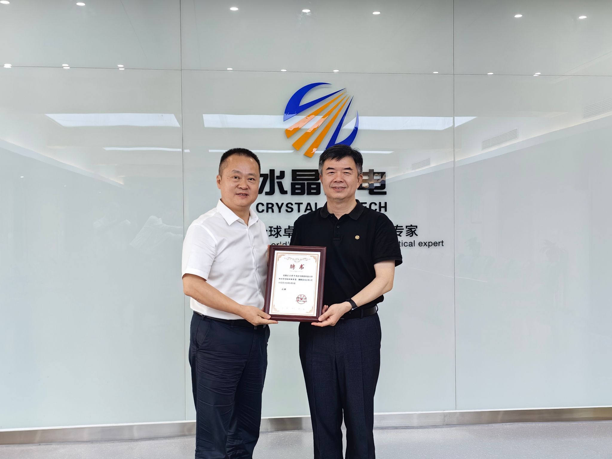 物理學(xué)院院長張鵬偉介紹了學(xué)院近年來在人才培養(yǎng)、考研就業(yè)、科學(xué)研究等方面取得的成績,并對雙方共建“水晶班”籌備建設(shè)情況進(jìn)行了說明。兩位校友代表分別介紹了各自在水晶光電的崗位履職、生活學(xué)習(xí)等情況。