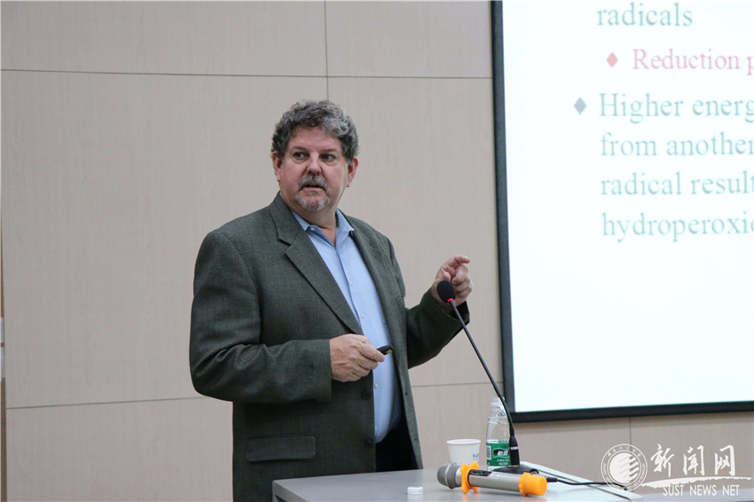 5月25日,美國(guó)麻省州立大學(xué)Amherst分校食品科學(xué)系主任Decker教授作客我?!拔囱雽?dǎo)師論壇”,在教師發(fā)展中心培訓(xùn)教室作了題為“Natural Strategies to Control Lipid Oxidation in Foods(控制食品脂質(zhì)氧化的新策略)”的學(xué)術(shù)報(bào)告。食品與生物工程學(xué)院教師、研究生及部分本科生參加了此次報(bào)告會(huì)。
