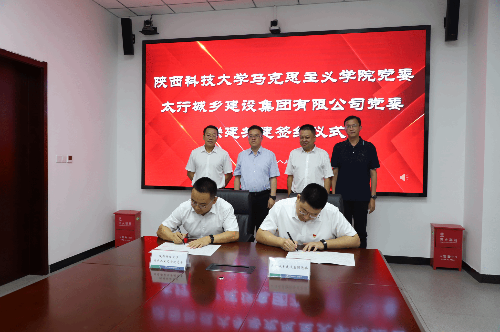 企業(yè)方對郭強一行表示歡迎,均表達了深化校企合作的意愿,提出通過共建實踐基地、聯(lián)合科研攻關(guān)、互訪交流等形式,推動資源共享與優(yōu)勢互補,深化雙方在產(chǎn)學研用方面務(wù)實合作。期間,馬克思主義學院黨委與太行城鄉(xiāng)建設(shè)集團有限公司黨委簽訂黨建共建合作協(xié)議,雙方將以黨建為引領(lǐng),在人才培養(yǎng)、科研創(chuàng)新、社會服務(wù)等領(lǐng)域探索深度合作。