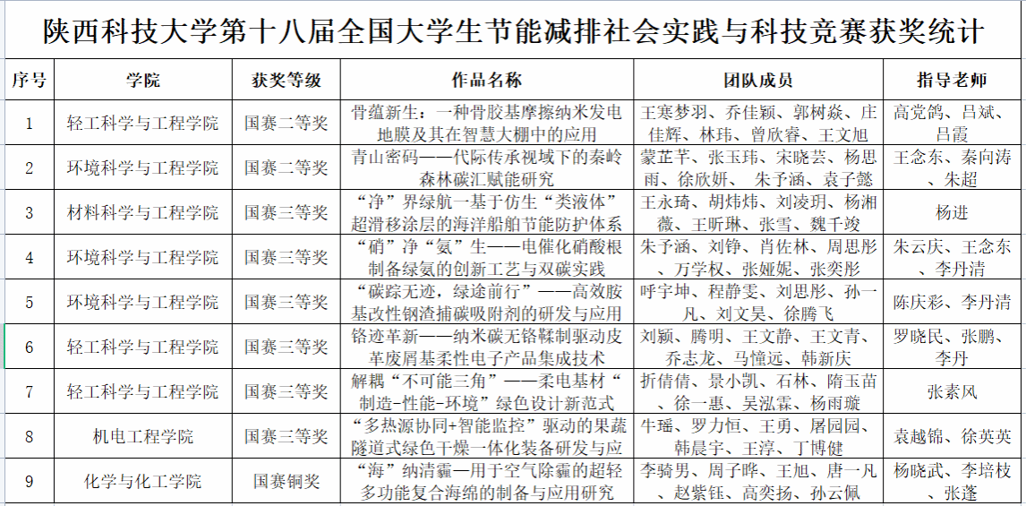 8月8日-11日,由教育部高等學(xué)校能源動(dòng)力類專業(yè)教學(xué)指導(dǎo)委員會(huì)指導(dǎo)、全國(guó)大學(xué)生節(jié)能減排社會(huì)實(shí)踐與科技競(jìng)賽委員會(huì)主辦的第十八屆全國(guó)大學(xué)生節(jié)能減排社會(huì)實(shí)踐與科技競(jìng)賽決賽在東北石油大學(xué)落下帷幕,本屆大賽共收到31個(gè)省份、692所高校的7736件參賽作品,以及254件產(chǎn)業(yè)賽道作品,吸引55000余名優(yōu)秀學(xué)子報(bào)名參加。陜西科技大學(xué)在該項(xiàng)賽事中榮獲二等獎(jiǎng)2項(xiàng)、三等獎(jiǎng)6項(xiàng)及產(chǎn)業(yè)賽道銅獎(jiǎng)1項(xiàng),并榮獲全國(guó)高?!皟?yōu)秀組織獎(jiǎng)”。
