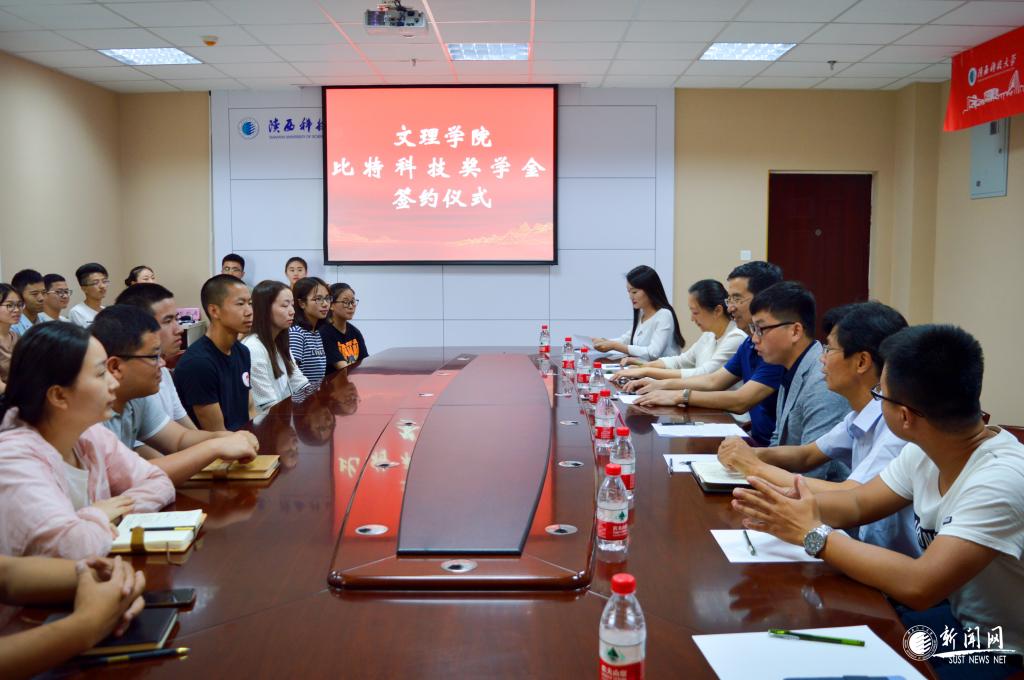 最后,楊斌與藺小林共同簽署了“比特科技獎學(xué)金”協(xié)議書。