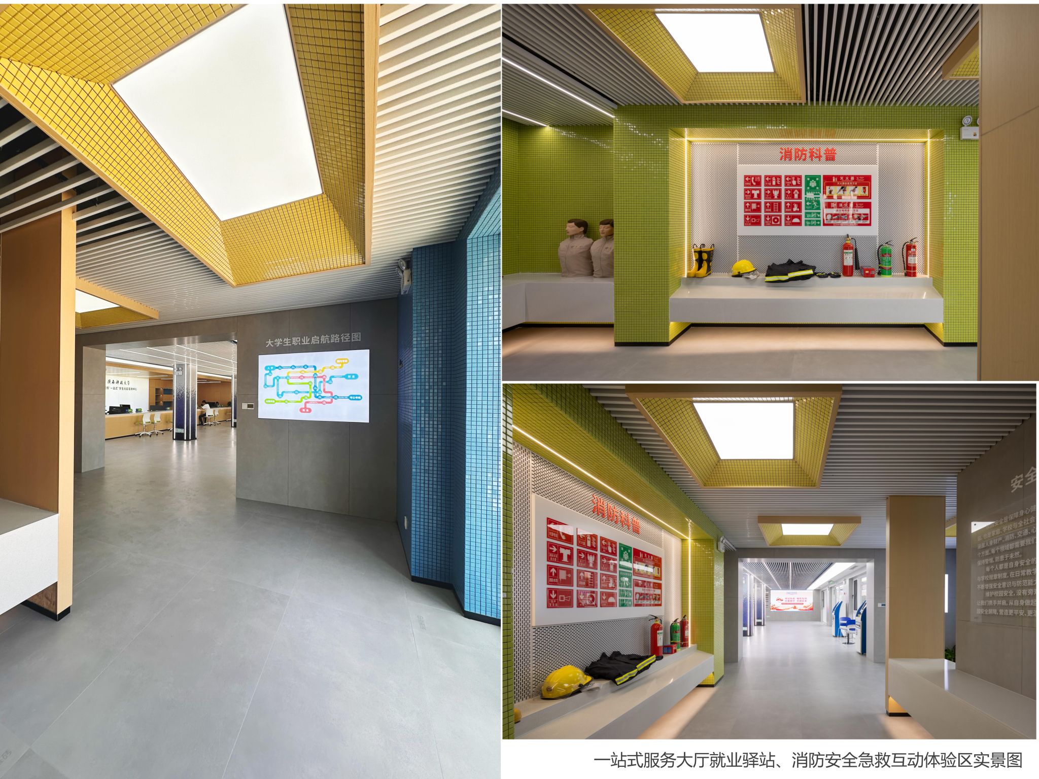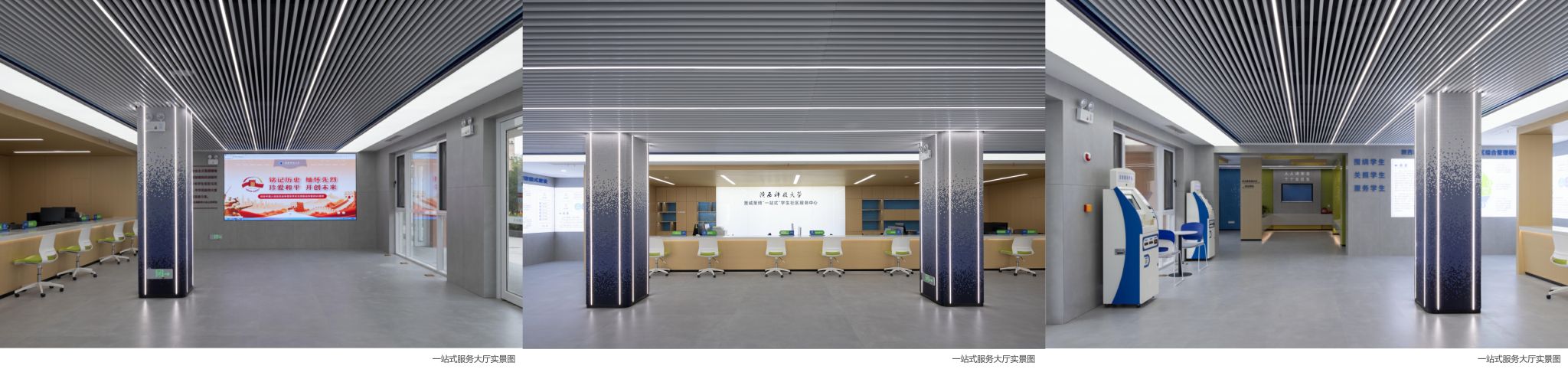 中心集中建設(shè)了面向?qū)W生的全方位服務(wù)平臺(tái),一樓服務(wù)大廳設(shè)有十余個(gè)服務(wù)窗口,在大量問(wèn)需調(diào)研的基礎(chǔ)上,為學(xué)生提供教務(wù)、學(xué)工、財(cái)務(wù)、后勤、保衛(wèi)等各方面業(yè)務(wù)辦理及咨詢服務(wù),大廳還配備了自助服務(wù)一體機(jī)。大廳南側(cè)設(shè)置了就業(yè)驛站、消防安全及應(yīng)急救護(hù)互動(dòng)體驗(yàn)區(qū)、共享會(huì)議室。就業(yè)驛站集中展示職業(yè)生涯規(guī)劃導(dǎo)航知識(shí),及時(shí)更新推送就業(yè)信息和各地人才政策,并常態(tài)化接待學(xué)生提供專業(yè)精準(zhǔn)的生涯規(guī)劃及就業(yè)指導(dǎo)服務(wù);消防安全及應(yīng)急救護(hù)互動(dòng)體驗(yàn)區(qū)展示應(yīng)急救護(hù)、火災(zāi)防范等安全知識(shí),并結(jié)合全國(guó)防災(zāi)減災(zāi)日主題不斷更新展陳內(nèi)容,未來(lái)還將設(shè)置互動(dòng)體驗(yàn)設(shè)備,持續(xù)引導(dǎo)和服務(wù)廣大學(xué)生"人人講安全,個(gè)個(gè)會(huì)應(yīng)急"并積極查找和化解身邊安全隱患;共享會(huì)議室既能用于日?!敖釉V即辦”的接待,又能為師生提供共享式的面對(duì)面交流舒適空間。