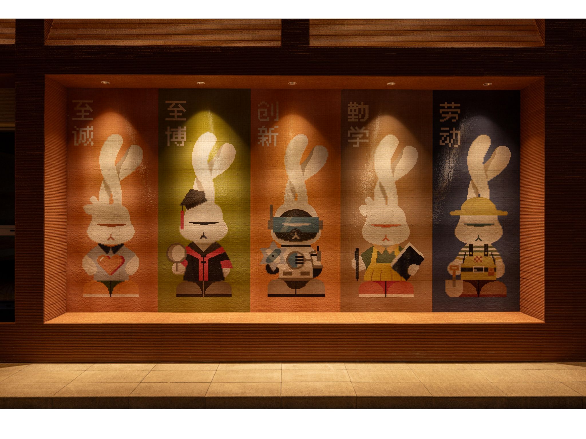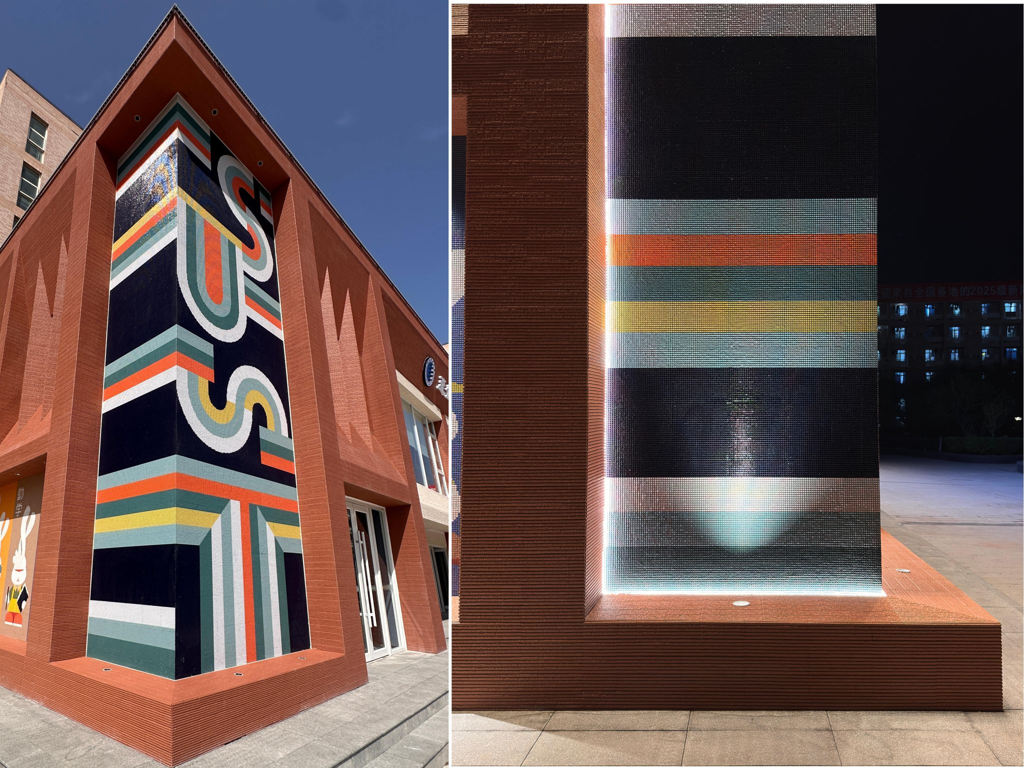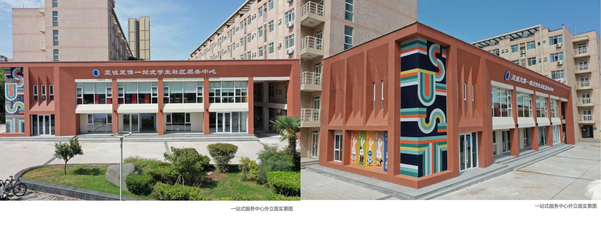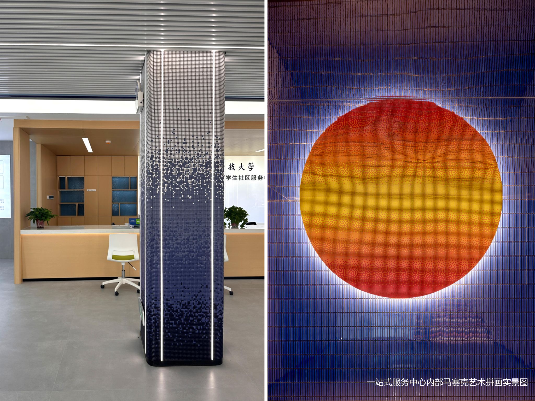 "至誠(chéng)至博"一站式學(xué)生社區(qū)服務(wù)中心的建筑外觀現(xiàn)代簡(jiǎn)潔,內(nèi)部空間功能合理,陶瓷材質(zhì)的天然美感既充分體現(xiàn)我校輕工專業(yè)特色,又與校園空間相得益彰融合,外墻磚的色彩搭配和諧統(tǒng)一,室內(nèi)外馬賽克藝術(shù)拼畫既展現(xiàn)了現(xiàn)代材料美學(xué)和空間美學(xué)的結(jié)合,為社區(qū)環(huán)境注入了藝術(shù)活力,為廣大學(xué)生創(chuàng)造了既實(shí)用又美觀的學(xué)習(xí)生活空間,進(jìn)一步推動(dòng)學(xué)生社區(qū)從單純生活場(chǎng)所轉(zhuǎn)變?yōu)榻逃畛砷L(zhǎng)共同體的育人場(chǎng)域。
