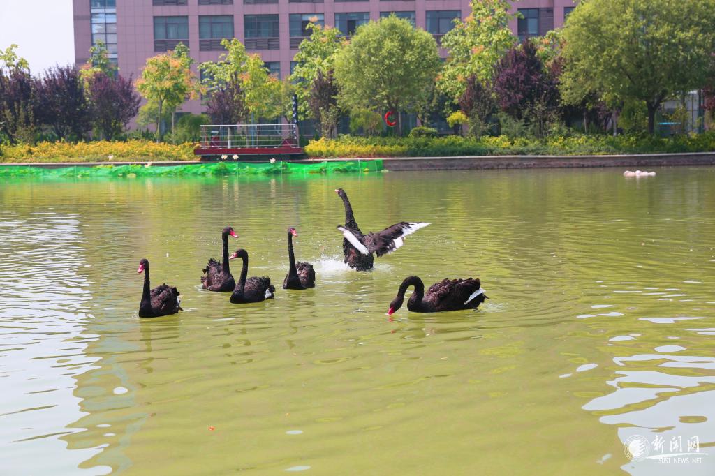 6月20日,隨著一聲高亢的鳴叫,3對來自澳大利亞的黑天鵝由我校親水平臺進入科大湖,游向他們的新家。