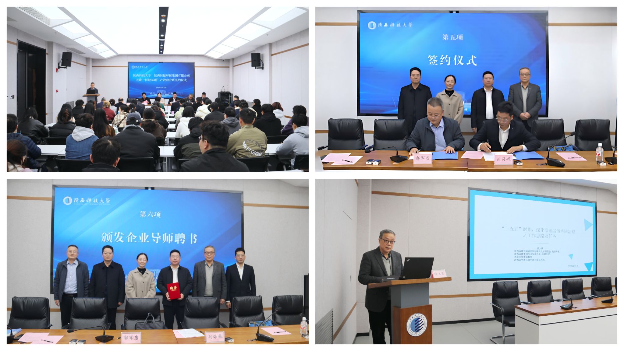 11月11日,環(huán)境科學(xué)與工程學(xué)院(碳中和科學(xué)與技術(shù)學(xué)院)與陜西恒健環(huán)保集團(tuán)有限公司共建“恒健雙碳”產(chǎn)教融合班簽約儀式在至誠(chéng)至博會(huì)議中心舉行。校黨委副書(shū)記、紀(jì)委書(shū)記、監(jiān)察專(zhuān)員羅瑩出席會(huì)議并致辭,恒健環(huán)保集團(tuán)公司董事長(zhǎng)王韶、省生態(tài)環(huán)境廳原二級(jí)巡視員續(xù)大康出席會(huì)議,教務(wù)處負(fù)責(zé)人、恒健環(huán)保集團(tuán)企業(yè)代表、環(huán)境學(xué)院班子成員及師生代表參加儀式。儀式由環(huán)境學(xué)院院長(zhǎng)郭軍康主持。