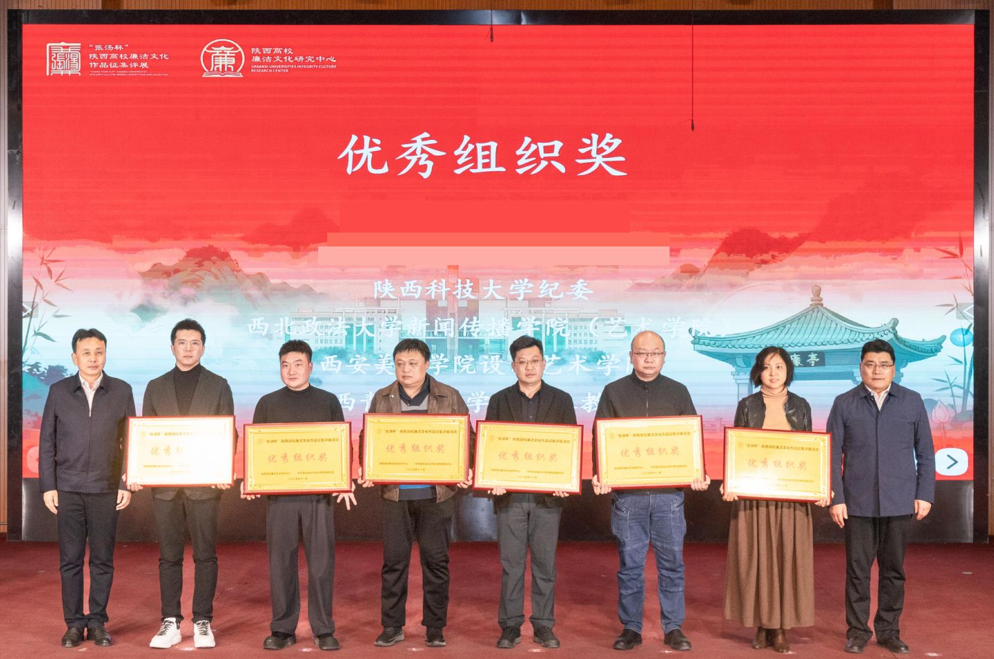 11月27日,由陜西高校廉潔文化研究中心等單位主辦的“張湯杯”陜西高校廉潔文化作品征集評(píng)展活動(dòng)圓滿落幕。陜西科技大學(xué)榮獲“優(yōu)秀組織單位”稱號(hào),推薦作品獲一等獎(jiǎng)1項(xiàng)、二等獎(jiǎng)2項(xiàng)、三等獎(jiǎng)2項(xiàng)、優(yōu)秀獎(jiǎng)6項(xiàng),獲獎(jiǎng)率超80%。黨委副書記、紀(jì)委書記、監(jiān)察專員羅瑩應(yīng)邀在頒獎(jiǎng)典禮現(xiàn)場做工作經(jīng)驗(yàn)交流。