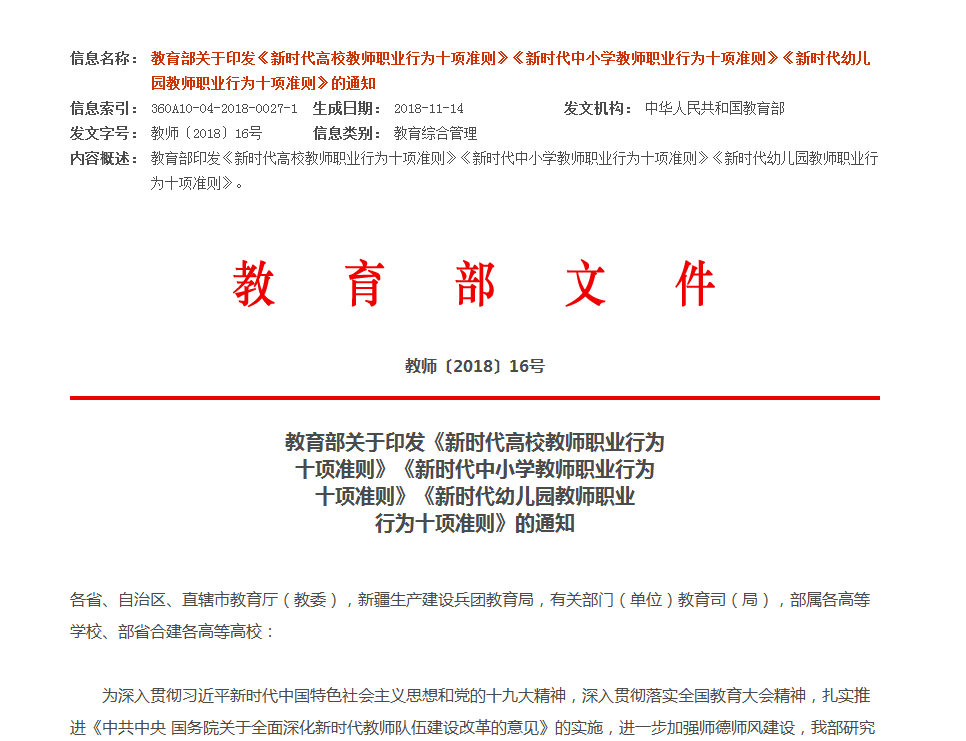 【政策速遞】新時(shí)代高校教師職業(yè)行為十項(xiàng)準(zhǔn)則