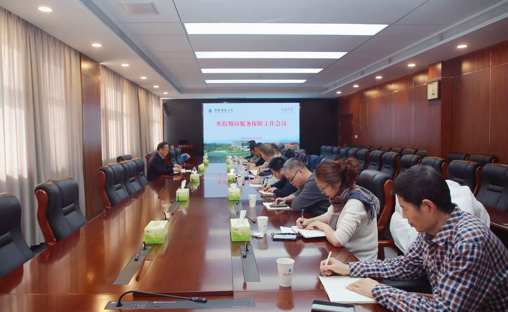 1月14日,副校長黃海峙召集后勤服務(wù)集團、資產(chǎn)經(jīng)營公司、信息與網(wǎng)絡(luò)管理中心等部門在逸夫樓506會議室召開寒假期間服務(wù)保障工作部署會議。相關(guān)部門負責(zé)人參加會議。