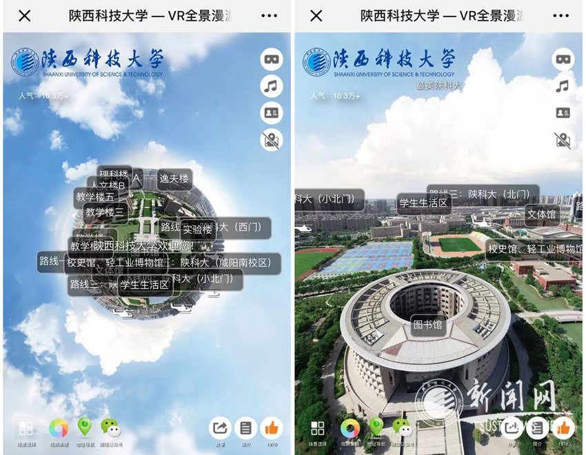 宣傳手段推陳出新、與時俱進(jìn),新技術(shù)新應(yīng)用不斷納入提升傳播效果。推出《微博故事》、《VR全景漫游》、《風(fēng)味陜科大》、《科大一分鐘》等欄目,力求通過VR、微視頻、H5、繪畫、直播等多元傳播方式講好科大故事。目前,VR全景地圖已經(jīng)超過10萬人點擊使用。3月開通陜西科技大學(xué)抖音號,已有6000余人點贊,總閱讀量突破10萬。