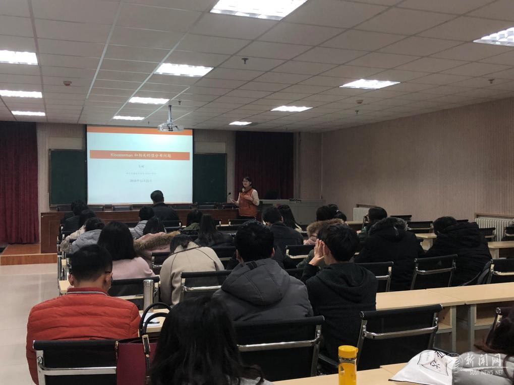 易媛教授在報告中指出,Kloosterman和及其相關(guān)問題的研究在現(xiàn)代解析數(shù)論以及自守形式理論中占有極其重要的位置,關(guān)于Kloosterman和及其算術(shù)性質(zhì)是數(shù)論研究中關(guān)注的重要問題之一。易媛教授介紹了有關(guān)Kloosterman和均值分布的結(jié)果及其相關(guān)問題研究。報告會后,易媛教授耐心解答了老師和學(xué)生的問題,并結(jié)合自己做研究、寫基金項目及培養(yǎng)研究生等方面的心得和經(jīng)驗與老師們進行了深入交流。