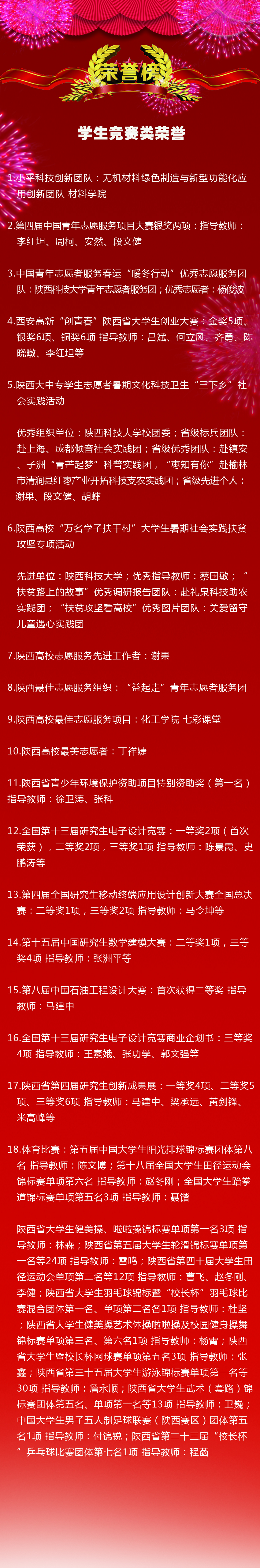 舊歲已展千重錦,新年再進(jìn)百尺竿。2019年伊始,我們總結(jié)梳理一年來(lái)全校師生的收獲與喜悅,激勵(lì)全體陜科大人以更加堅(jiān)定的決心、更加昂揚(yáng)的斗志,奮楫揚(yáng)帆、闊步前行,共同抒寫學(xué)校內(nèi)涵發(fā)展和“雙一流”建設(shè)新篇章。
