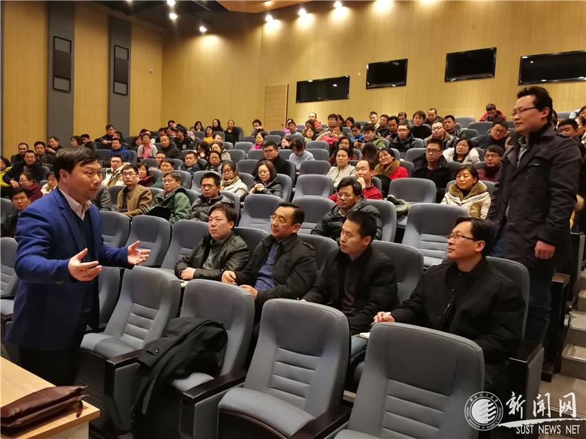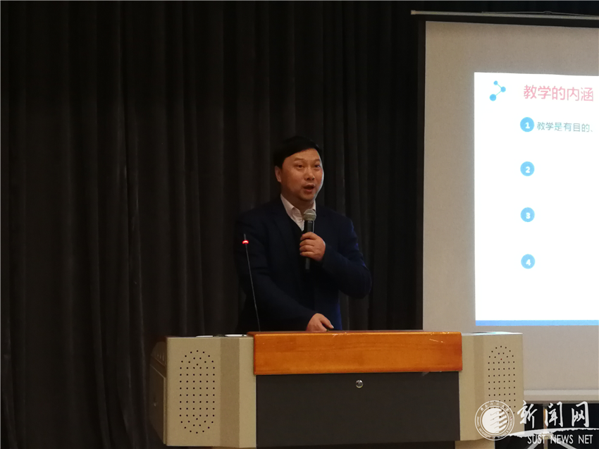 1月16日下午,我校第七場“教育教學(xué)論壇”系列報告會在人文樓五樓報告廳舉行。論壇邀請了萬人計劃領(lǐng)軍人才、國家級教學(xué)名師、西北大學(xué)賴紹聰教授做了題為《精心設(shè)計課堂教學(xué),讓每堂課深入人心》的報告。報告會由教務(wù)處主辦,環(huán)境科學(xué)與工程學(xué)院承辦。副校長郭霄鵬出席報告會,教務(wù)處相關(guān)人員、環(huán)境學(xué)院全體教師、各學(xué)院(部)教學(xué)副院長及教師代表參加了此次報告會,報告會由教務(wù)處處長費貴強主持。