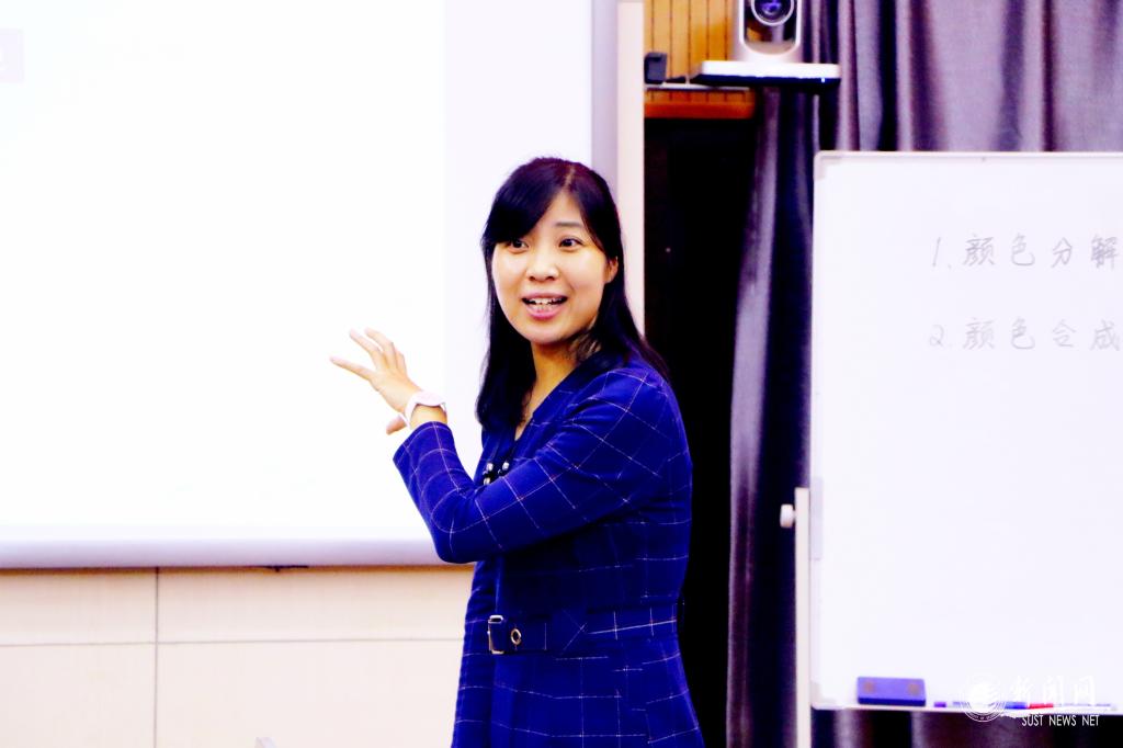 張曼所講授的《印刷色彩學(xué)》是一門印刷專業(yè)基礎(chǔ)課程,也是首次在我校開設(shè)。為了使學(xué)生的科學(xué)理論和實踐技能平行增長,授課要兼具理工學(xué)科的嚴(yán)謹(jǐn)、求實性和服務(wù)行業(yè)的實踐應(yīng)用性,對教師的講授方式提出了許多創(chuàng)新性的要求。她“摸著石頭過河”,一面不斷從圖書館、從本科時的課堂筆記中追求“認(rèn)識論”,一面從旁聽其他學(xué)校的課程及線上教學(xué)資源中找尋“方法論”。在課堂上,為了把豐富的色彩世界和抽象的顏色空間精準(zhǔn)地呈獻(xiàn)給學(xué)生,單純靠口頭講授是不行的。張曼就利用課余時間自學(xué)了Photoshop、Flash等軟件制作技術(shù),在設(shè)計PPT及案例講述時,融入大量圖片、動畫、視頻等資源,盡量做到豐富生動、吸引學(xué)生的目光,把枯燥的顏色模型用生動的色彩案例表現(xiàn)出來,讓學(xué)生的想象力始終在豐富的七彩世界里遨游。