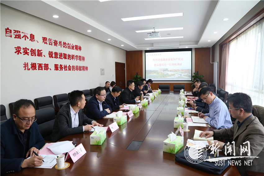 3月11日下午,湖南省市場監(jiān)督管理局黨組成員、省知識產(chǎn)權(quán)局局長段志雄一行4人到我校調(diào)研交流知識產(chǎn)權(quán)工作。陜西省知識產(chǎn)權(quán)局副巡視員裴犁,我校校長馬建中教授以及黨辦校辦、前沿院、科技處和陜西省知識產(chǎn)權(quán)運(yùn)營研究中心相關(guān)負(fù)責(zé)人參加了座談會。會議由副校長黃劍鋒教授主持。
