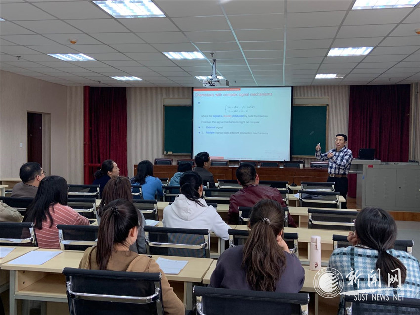 3月15日下午,應(yīng)文理學(xué)院邀請(qǐng),東華大學(xué)陶有山教授作客我?!拔囱雽?dǎo)師論壇”,在理科樓文理學(xué)院做了題為“Toward chemotactic cross-diffusion models(趨化交叉擴(kuò)散模型)”的學(xué)術(shù)報(bào)告。報(bào)告會(huì)由文理學(xué)院院長(zhǎng)藺小林教授主持,數(shù)學(xué)系部分教師和研究生聆聽了陶教授的報(bào)告。