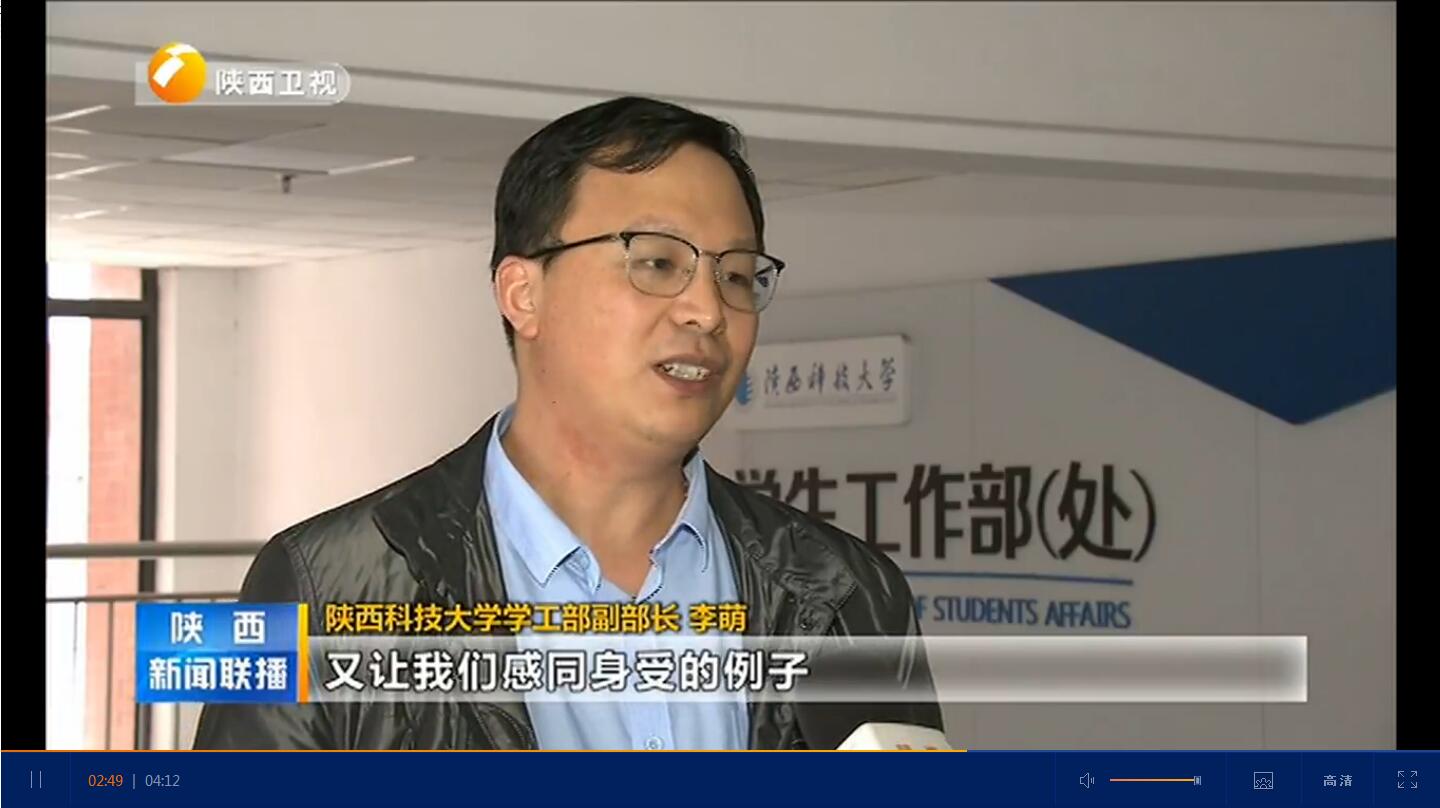 3月19日19:30分,陜西廣播電視臺1套《陜西新聞聯(lián)播》頭條播出題為“鑄魂育人 培養(yǎng)擔當民族復(fù)興大任的時代新人 習(xí)近平總書記在學(xué)校思想政治理論課教師座談會上的重要講話在我省教育工作者中引起強烈反響”報道,赴京應(yīng)邀參加習(xí)近平總書記主持召開的學(xué)校思想政治理論課教師座談會的我校學(xué)工部副部長李萌,我校大學(xué)生心理健康中心輔導(dǎo)員董陽、經(jīng)濟管理學(xué)院院長助理張凱凱等接受采訪,紛紛暢談學(xué)習(xí)講話精神的心得體會,表達了為培養(yǎng)更多德智體美勞全面發(fā)展的社會主義建設(shè)者和接班人貢獻力量的決心。