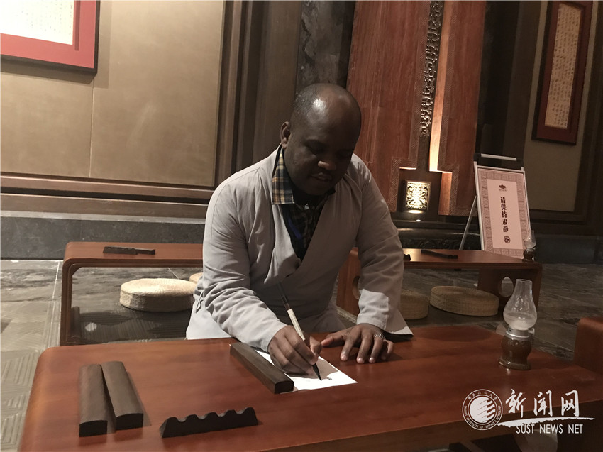 根據(jù)中國(guó)文化“走出去”戰(zhàn)略,漢中文化和旅游融合發(fā)展論壇服務(wù)高校留學(xué)生漢語(yǔ)教學(xué)、面向在中國(guó)學(xué)習(xí)的外國(guó)留學(xué)生、海外漢語(yǔ)學(xué)習(xí)群體,為他們提供學(xué)習(xí)漢語(yǔ)、感受漢文化、了解中國(guó)社會(huì)的實(shí)踐教學(xué)活動(dòng)?;顒?dòng)期間留學(xué)生穿上漢服,學(xué)習(xí)漢禮,嘗試用毛筆寫(xiě)字。舉手投足間,一位位“漢代人”以塌為席,盤(pán)腿入座,好似穿越了時(shí)空。