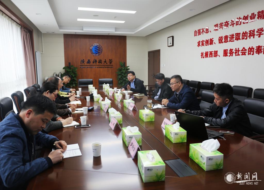 楊欲曉對朱君強(qiáng)一行的到來表示熱烈歡迎,他介紹了我校“三創(chuàng)兩遷”的發(fā)展歷史以及學(xué)校近年來在學(xué)科建設(shè)、人才培養(yǎng)、人才引進(jìn)等方面取得的成果,分享了我校在大學(xué)精神凝練、文明校園創(chuàng)建、易班建設(shè)等工作的經(jīng)驗(yàn)。楊欲曉表示,陜科大近年來堅(jiān)持內(nèi)涵式發(fā)展理念,本著“質(zhì)量立校、學(xué)科強(qiáng)校、人才興?!钡陌l(fā)展思路,以主動求變的勇氣大力破除學(xué)科發(fā)展桎梏,深入推進(jìn)“雙一流”建設(shè),核心競爭力有了明顯提升。學(xué)校在全面推進(jìn)事業(yè)改革發(fā)展過程中,始終把精神文明建設(shè)放在非常重要的戰(zhàn)略地位,在“三創(chuàng)兩遷”大學(xué)精神指引下,加強(qiáng)思想文化建設(shè)頂層設(shè)計(jì),以文明校園創(chuàng)建工作為抓手,大力建設(shè)文明校園“六個(gè)好”,呈現(xiàn)出領(lǐng)導(dǎo)班子建設(shè)好、思想政治引領(lǐng)好、師德師風(fēng)面貌好、校園文化建設(shè)好、校園環(huán)境優(yōu)化好、陣地建設(shè)成果好的生動局面,為全面推進(jìn)學(xué)校事業(yè)改革發(fā)展發(fā)揮了統(tǒng)一思想、凝聚力量的強(qiáng)大作用。