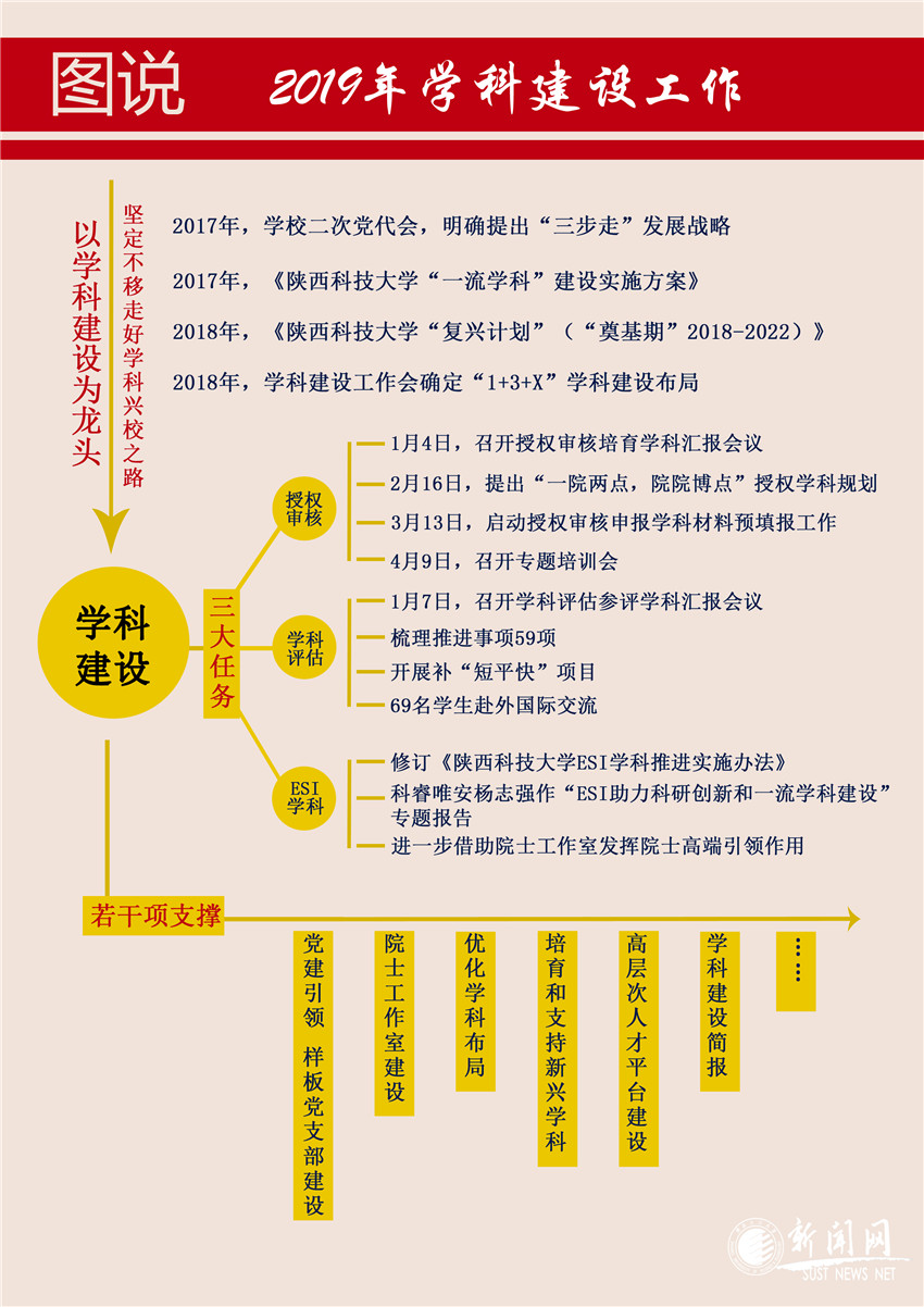 去年,第四輪學(xué)科評(píng)估結(jié)果公布后,學(xué)校召開(kāi)全校學(xué)科建設(shè)工作會(huì)議,確定了“1+3+X”的學(xué)科建設(shè)布局,明確了第五輪學(xué)科評(píng)估、學(xué)位授權(quán)審核申報(bào)、ESI學(xué)科提升計(jì)劃三大學(xué)科建設(shè)核心任務(wù)。圍繞三大核心工作,學(xué)校投入學(xué)科建設(shè)經(jīng)費(fèi)2400萬(wàn),按照“固優(yōu)、強(qiáng)特、扶需、重基、創(chuàng)新”的建設(shè)思路,重點(diǎn)支持優(yōu)勢(shì)、特色學(xué)科沖擊第五輪學(xué)科評(píng)估和博士學(xué)位授權(quán)申報(bào)。學(xué)科辦先后出臺(tái)了《陜西科技大學(xué)學(xué)科與研究生教育標(biāo)志性成果及項(xiàng)目獎(jiǎng)勵(lì)辦法》和《陜西科技大學(xué)ESI學(xué)科推進(jìn)實(shí)施辦法》“雙一流”建設(shè)的重要文件;通過(guò)多方調(diào)研論證提出《電氣與信息工程學(xué)院學(xué)科專業(yè)暨學(xué)院調(diào)整初步方案》;成功舉辦15場(chǎng)“院士論壇”、中國(guó)工程院“第六屆食品安全高峰論壇”等高水平學(xué)術(shù)活動(dòng);開(kāi)展6個(gè)在建院士工作室的考核工作等。