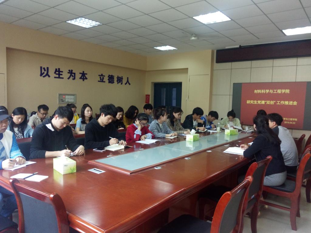 4月22日下午,材料學(xué)院召開研究生黨建“雙創(chuàng)”工作推進(jìn)會(huì)。院長助理田少寧、碩士、博士各年級(jí)黨支部、綠色無機(jī)材料創(chuàng)新團(tuán)隊(duì)第二黨支部的全體支部委員、部分黨員代表參會(huì)。會(huì)議由研究生輔導(dǎo)員達(dá)勇主持。