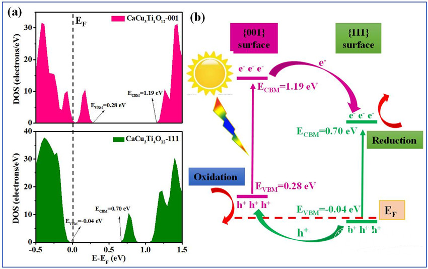 王傳義教授等以既有雙缺陷(金屬空位Ti3+, Cu+和氧缺陷)又含高暴露面({001}和{111})的雙鈣鈦礦材料CaCu3Ti4O12為模型,通過光降解抗生素活性測試,驗證了異質(zhì)面的作用并提出了缺陷偶極概念。相關(guān)成果發(fā)表在環(huán)境科學(xué)與工程類1區(qū)雜志《Applied Catalysis B: Environmental》(https://doi.org/10.1016/j.apcatb.2019.03.086)(IF=11.698)上。