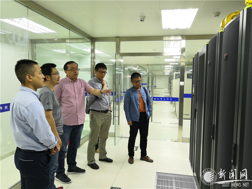 會后,竇浩一行現(xiàn)場參觀了我校中心機房。