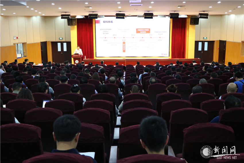 大學(xué)排名是大學(xué)綜合實力和競爭力的集中體現(xiàn),其提供的信息對我校了解自身的表現(xiàn),特別是明晰與“追趕超越”目標(biāo)的優(yōu)勢與差距,具有重要的參考價值。為貫徹學(xué)校第二次黨代會精神,進(jìn)一步落實《陜西科技大學(xué)“復(fù)興計劃(“奠基期”2018-2022年)》提出的目標(biāo)任務(wù),5月30日,我校邀請上海軟科教育信息咨詢有限公司咨詢項目主管楊其祥博士一行來校做專題報告《大學(xué)與學(xué)科競爭力分析與實施策略》。報告會前,校長馬建中、副校長李志健與來校專家進(jìn)行了座談。全體在校校領(lǐng)導(dǎo),正科級以上干部(含正科),正高級職稱人員,學(xué)院學(xué)術(shù)委員會委員、教學(xué)指導(dǎo)委員會委員、系主任(教研室主任、實驗室主任)等500余人參加報告會,報告會由發(fā)展規(guī)劃處處長、高教研究室主任杜致博主持。