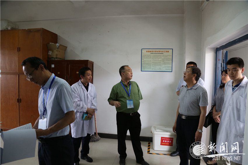 首先,王道安就我校的基本情況及實驗室安全工作總體情況向?qū)<医M做了簡要介紹。隨后,實驗室與設備管理處副處長張海寧從我校實驗室基本情況、條件保障、工作舉措和工作思路四個方面向?qū)<医M詳細介紹了我校近幾年實驗室安全工作的開展情況。檢查組專家查閱了我校實驗室安全制度、安全責任書、安全整改通報等資料,并對化學與化工學院、環(huán)境科學與工程學院、材料科學與工程學院、食品與生物工程學院的實驗室進行了現(xiàn)場核查。