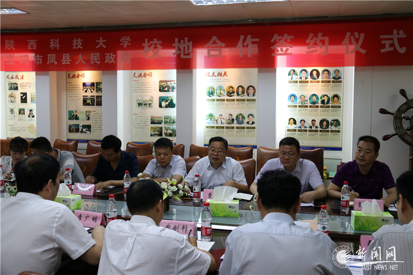 曹乃生對陜西科技大學(xué)長期關(guān)心和支持鳳縣經(jīng)濟發(fā)展工作表示感謝,他在介紹鳳縣經(jīng)濟建設(shè)發(fā)展和生態(tài)建設(shè)需求的基礎(chǔ)上,希望利用雙方優(yōu)勢,在秦嶺生態(tài)綜合整治、鳳縣環(huán)境污染治理、嘉陵江水源保護等方面取得合作。