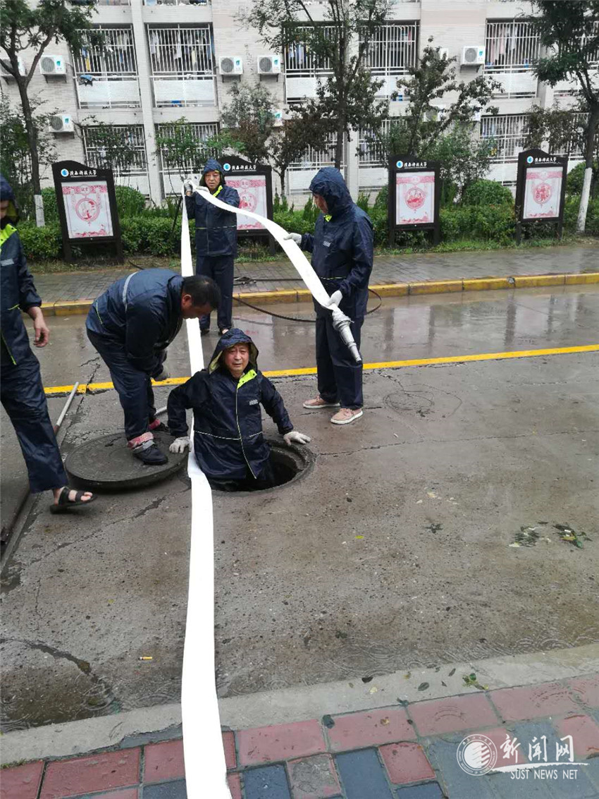 6月21日,筆者在學(xué)生一公寓看到了感人的一幕:學(xué)生一公寓污水管道全部堵塞,造成大面積廁所污水外流。后勤集團水電維修組人員正在緊急搶修。維修人員葛磊首當(dāng)其沖,穿著防水衣褲、腳蹬高筒套鞋,手拿15米長鋼帶疏通器,冒著危險,跳進又臟又臭且狹小的井槽里的進行疏通,僅用了15分鐘就將廁所污水管道疏通,既保證了學(xué)生的正常生活,也維護了公寓環(huán)境衛(wèi)生,使在現(xiàn)場的公寓辦老師和學(xué)生深受感動。
