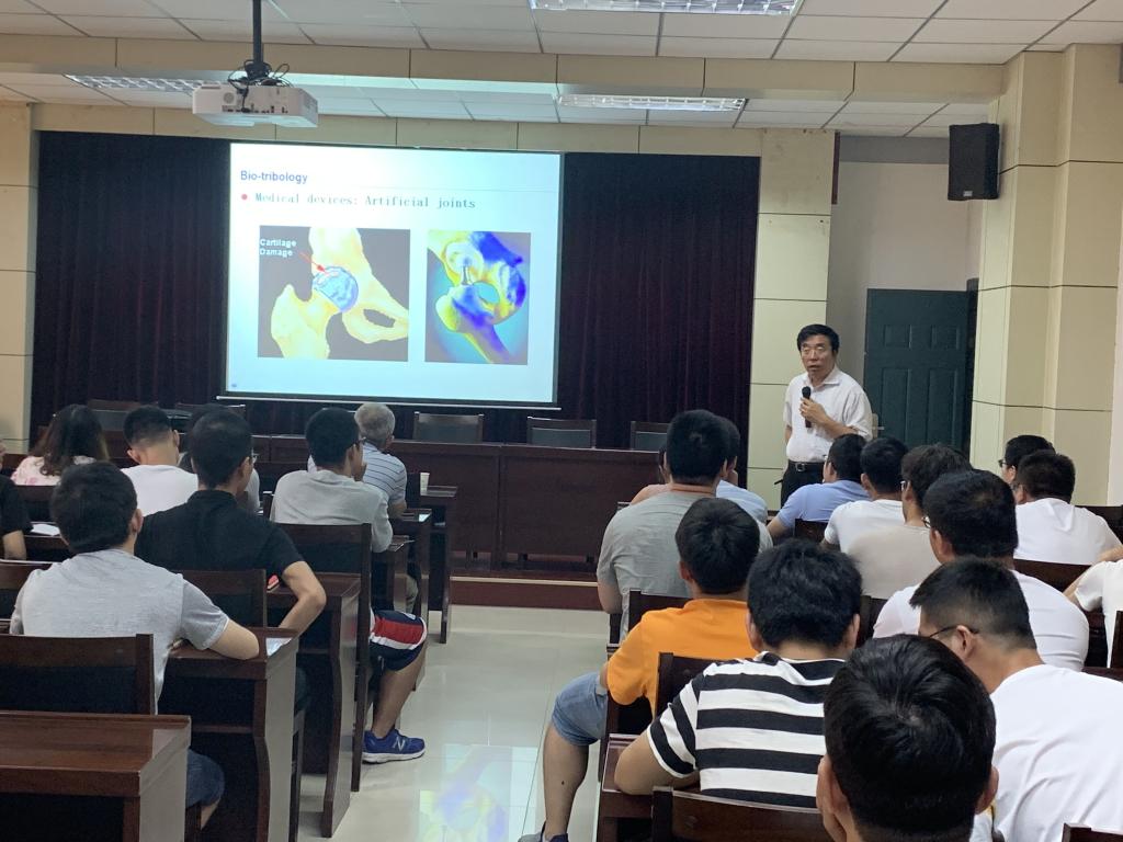 7月11日,受科技處和機(jī)電工程學(xué)院邀請(qǐng),西南交通大學(xué)機(jī)械學(xué)院教授、利茲學(xué)院院長(zhǎng),英國(guó)利茲大學(xué)醫(yī)學(xué)生物工程研究所客座教授靳忠民做客我?!扒把乜茖W(xué)報(bào)告”,帶來(lái)題為“生物摩擦學(xué)和摩擦生物學(xué)”的學(xué)術(shù)專題報(bào)告。陜西科技大學(xué)副校長(zhǎng)黃劍鋒出席會(huì)議并致辭,機(jī)電工程學(xué)院黨政班子主要成員、相關(guān)專業(yè)的教師、部分研究生聆聽(tīng)了此次報(bào)告。