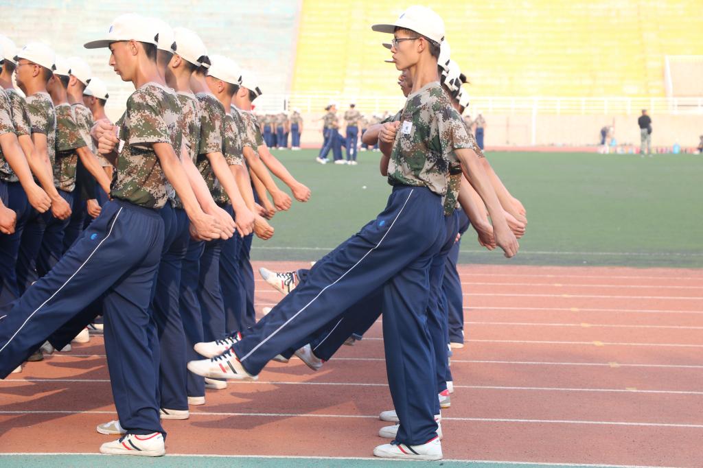 9月3日,隨著一聲聲響亮的口令,學(xué)員們的動(dòng)作整齊劃一。站軍姿,踢正步,調(diào)整手臂和抬腿的高度,每一個(gè)動(dòng)作都力求做到極致與完美,這些稚氣未脫的“零零后”們都在用不服輸?shù)木髲?qiáng)證明自己。高溫的天氣,他們依然堅(jiān)持著,吶喊著,汗水劃過(guò)他們稚嫩的臉龐,但他們并沒(méi)有停下自己向前邁進(jìn)的腳步。