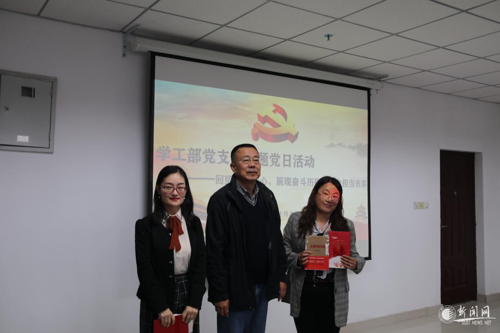 此次黨日活動(dòng)分為兩個(gè)階段,第一階段中,支部專門為入黨滿十五年的羅曉婷、王慧芳兩位同志舉行“過(guò)政治生日”儀式,校黨委副書記溫鋒為兩位黨員頒發(fā)了政治生日賀卡、主題教育學(xué)習(xí)資料,勉勵(lì)兩名黨員不忘初心、牢記使命,爭(zhēng)做一名忠誠(chéng)、干凈、有擔(dān)當(dāng)?shù)暮细顸h員。羅曉婷、王慧芳動(dòng)情的講述了自己的入黨故事,紛紛表示,要不忘初心、砥礪前行,努力踐行共產(chǎn)黨員的操守與信仰。