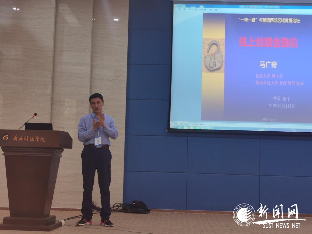 10月13日,“一帶一路與我國(guó)西部區(qū)域發(fā)展論壇”在廣西南寧舉行。我校經(jīng)濟(jì)與管理學(xué)院院長(zhǎng)馬廣奇教授受邀出席論壇,并做專(zhuān)題報(bào)告。論壇由復(fù)旦大學(xué)博士后校友會(huì)和廣西財(cái)經(jīng)學(xué)院主辦,吸引了來(lái)自國(guó)內(nèi)11個(gè)省市的120多名政府部門(mén)領(lǐng)導(dǎo)、高校專(zhuān)家學(xué)者及企業(yè)家代表參加,人民網(wǎng)、廣西日?qǐng)?bào)、南寧新聞網(wǎng)等媒體對(duì)論壇作了深入報(bào)道。