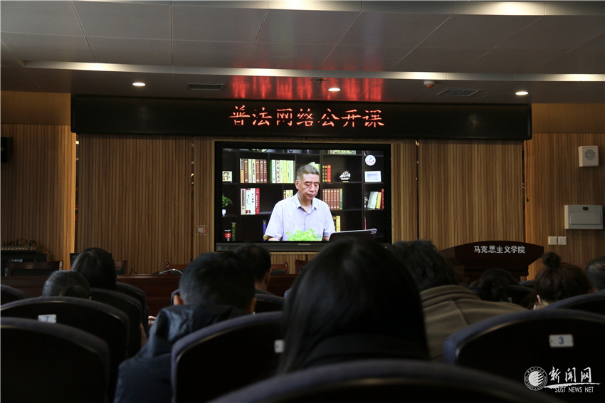 馬克思主義學(xué)院組織師生集中觀看普法網(wǎng)絡(luò)公開課。11月20日上午,馬克思主義學(xué)院組織全體教師和學(xué)生代表在人文樓1013報(bào)告廳集體觀看省委普法辦在“法治陜西網(wǎng)”推出的普法網(wǎng)絡(luò)視頻公開課,集中學(xué)習(xí)了省直機(jī)關(guān)工委副書記熊暉講授的《新時(shí)代黨內(nèi)法規(guī)解讀》課程。