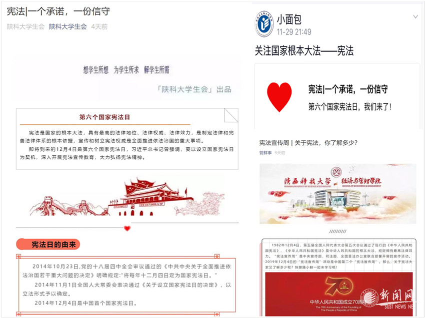 在“12.4”國家憲法日前夕,為深入學(xué)習(xí)貫徹習(xí)近平新時(shí)代中國特色社會主義思想,習(xí)近平總書記全面依法治國的新理念、新思想、新戰(zhàn)略,黨的十九大和十九屆四中全會精神,重點(diǎn)宣傳憲法的地位、作用和主要內(nèi)容,我國法治建設(shè)的輝煌成就和社會主義核心價(jià)值觀,推動廣大師生深入、有效學(xué)習(xí)宣傳憲法,增強(qiáng)師生法治觀念,培養(yǎng)師生學(xué)法、知法、守法、護(hù)法意識,建設(shè)“平安校園”“文明校園”“和諧校園”,進(jìn)一步做好普法宣傳教育工作,陜西科技大學(xué)組織開展“憲法宣傳周”主題學(xué)習(xí)活動,旨在弘揚(yáng)憲法精神,維護(hù)憲法權(quán)威,厚植愛國主義情懷,讓憲法精神活起來、落下去、走進(jìn)人民群眾日常生活。