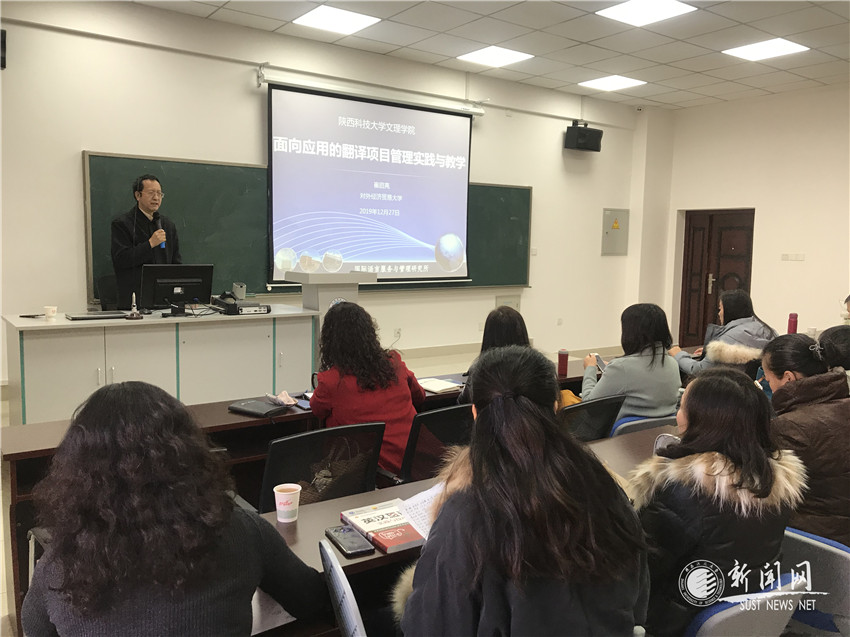 12月27日上午,“未央導師論壇”系列學術報告之《面向應用的翻譯項目管理時間與教學》在教學樓A座MTI中心舉行,對外經(jīng)濟貿(mào)易大學英語學院副教授、碩士研究生導師、國際語言服務與管理研究所副所長崔啟亮教授受邀作客我校“未央導師論壇”。本次講座由文理學院院長劉建科主持。