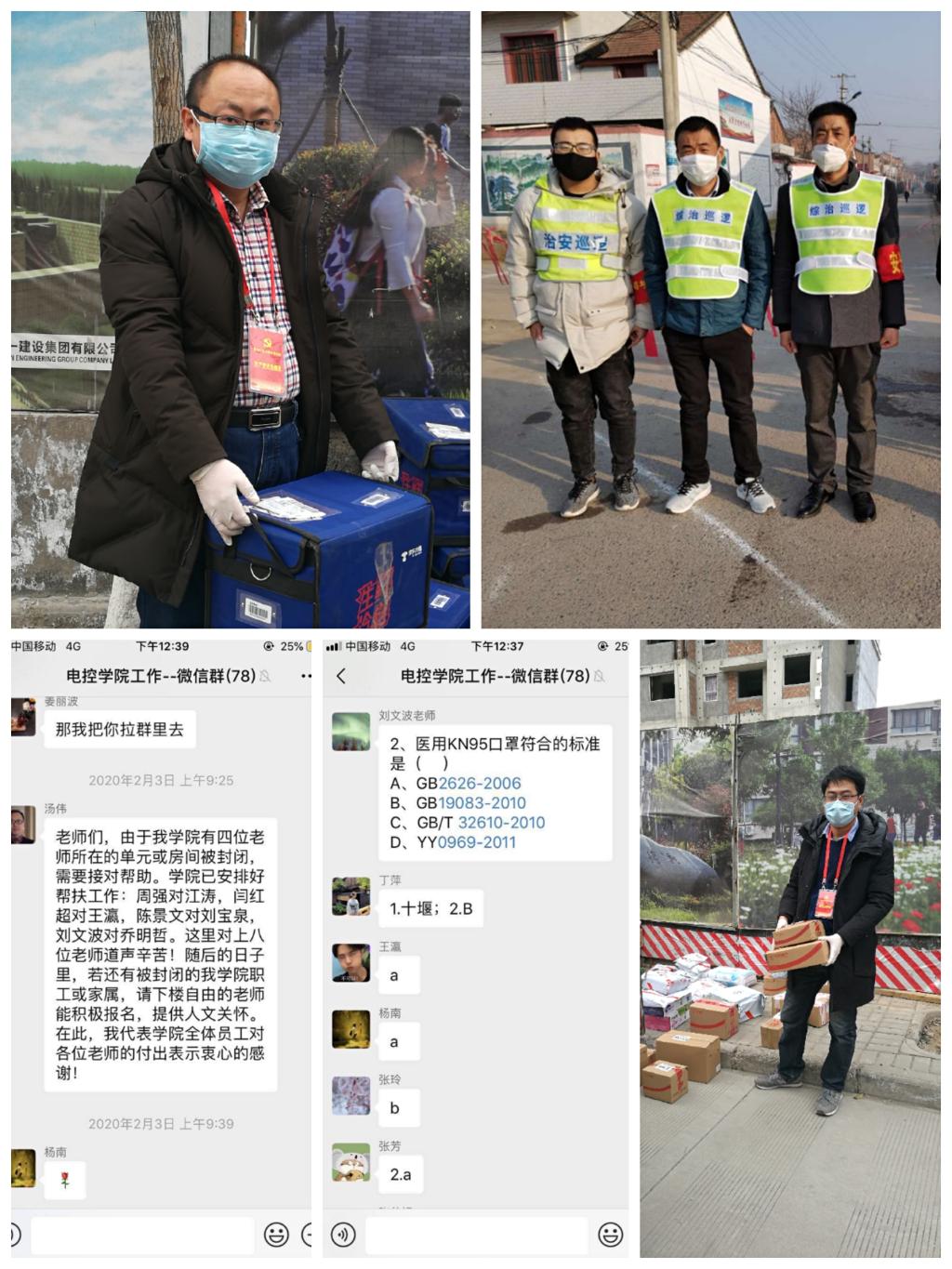 在學(xué)院6名教工隔離在家期間,學(xué)院黨委積極聯(lián)系安排黨員教工進(jìn)行“一對一”結(jié)對幫扶,解決隔離教工生活不便問題。院工會牽頭組織為期一周的疫情防控知識有獎競答活動,既活躍了微信群氣氛又宣傳普及了防疫知識。此外,工會委員在元宵節(jié)當(dāng)天給被隔離教工送去蛋奶蔬菜等生活物資作為慰問。學(xué)院各師生黨支部認(rèn)真組織學(xué)習(xí)中央關(guān)于疫情防控的文件精神,開展“我為師生辦實(shí)事”主題黨日活動,教師黨員陳景文、馮引安,學(xué)生黨員杜丹陽等積極投身“黨員先鋒崗”,開展志愿服務(wù),發(fā)揮黨員先鋒模范作用。各黨團(tuán)支部通過建立四六級打卡群、考研就業(yè)指導(dǎo)幫扶群、整理推送學(xué)習(xí)筆記及科目重難點(diǎn)等多種形式組織學(xué)生居家開展理論知識學(xué)習(xí)。