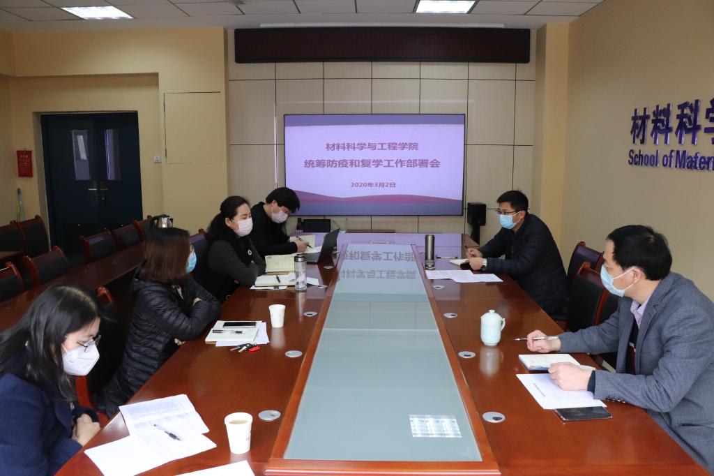 繼召開多次視頻會議之后,3月2日復(fù)課第一天,材料學(xué)院黨政班子全體成員召開會議,再次研究部署學(xué)院防疫和復(fù)學(xué)工作。會上,院黨委書記楊長安領(lǐng)學(xué)了習(xí)近平總書記“2·23”重要講話精神和學(xué)校書記專題會、校長辦公會上的工作安排,要求學(xué)院班子成員要統(tǒng)一思想,提高認(rèn)識,統(tǒng)籌兼顧抓好防疫和復(fù)學(xué)兩個(gè)大局,落實(shí)好上級各項(xiàng)要求,全面進(jìn)入工作狀態(tài)。院長朱建鋒對教職工分批返校、線上授課、專業(yè)建設(shè)、基金申報(bào)、學(xué)科評估、就業(yè)指導(dǎo)、實(shí)驗(yàn)室消殺等工作進(jìn)行逐一部署,強(qiáng)調(diào)要積極轉(zhuǎn)變工作思路,主動做好服務(wù)保障,為教職工恢復(fù)教學(xué)、科研秩序提供便利條件。會上對學(xué)院2020年度目標(biāo)任務(wù)和重點(diǎn)工作進(jìn)行了深入研討和細(xì)化分解。