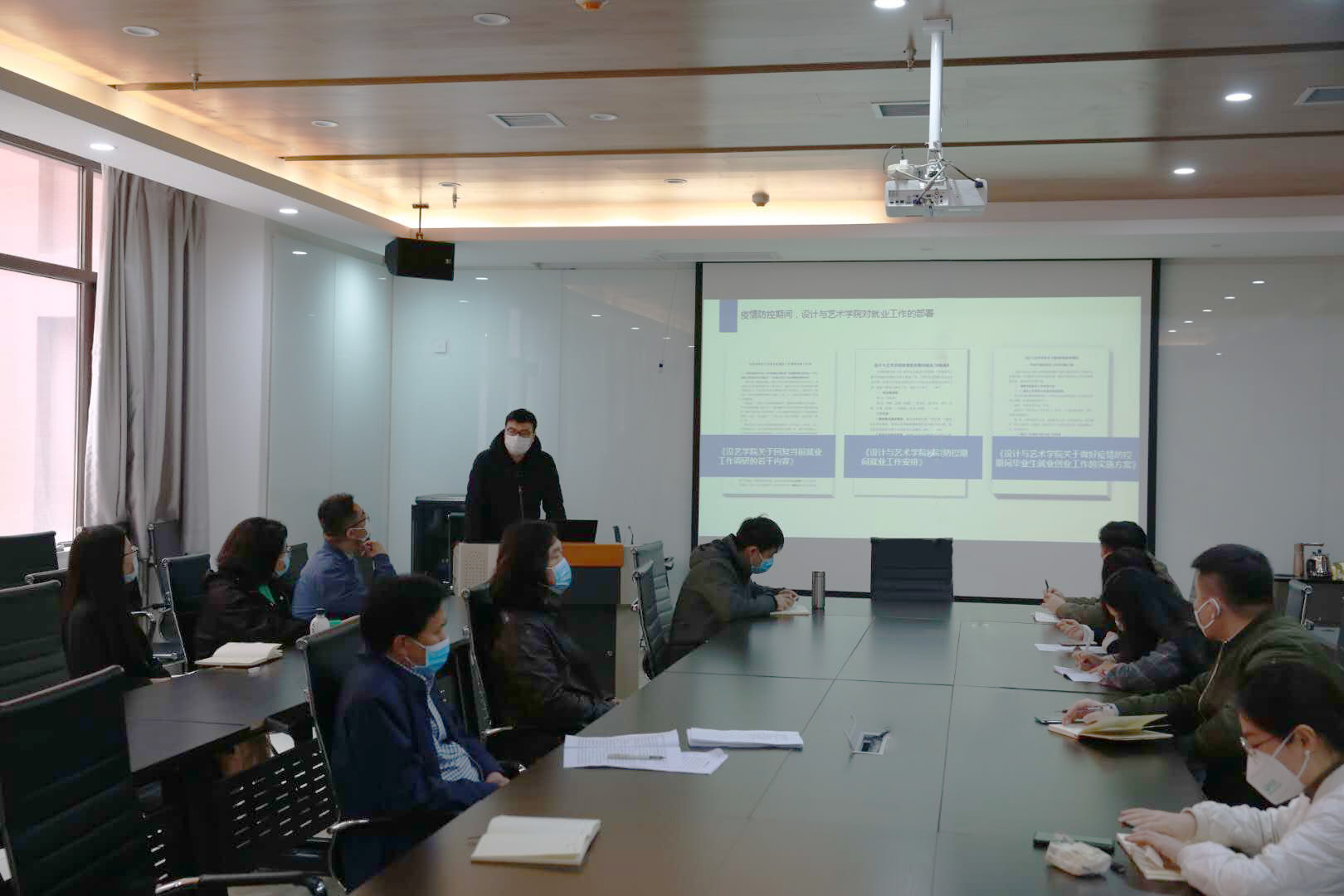 黨政領(lǐng)導高度重視,全體職工共同參與。3月30日上午,設(shè)藝學院在人文樓B326會議室召開2020屆畢業(yè)生就業(yè)工作深入部署推進會。學院黨政班子、教研室主任、教工黨支部書記、部分碩士生導師及全體輔導員參加會議。會議由院黨委副書記記李紅坦主持。會上李紅坦向與參會人員做了主題為《疫情期間設(shè)計與藝術(shù)學院就業(yè)形勢以及全員參與就業(yè)工作的必要性》的專題匯報,深刻分析了當前學院就業(yè)工作所面臨的嚴峻形勢,傳達了學校黨委及校就業(yè)指導中心在疫情防控期間兩次就業(yè)工作專題會的相關(guān)精神與部署要求,并結(jié)合3與9日學院就業(yè)工作推進會擬定的《設(shè)計與藝術(shù)學院疫情防控期間的就業(yè)工作安排》以及3月26日下發(fā)的《設(shè)計與藝術(shù)學院關(guān)于做好疫情防控期間畢業(yè)生就業(yè)創(chuàng)業(yè)工作的實施方案》,認真解讀了學院當前推進就業(yè)工作的具體實施辦法及工作要求。隨后,設(shè)藝學院黨委書記杜致博強調(diào),當前全國疫情防控形勢向好發(fā)展,“穩(wěn)就業(yè)”既是本職工作也是政治任務,各黨支部書記、教研室主任要配合畢業(yè)班輔導員分門分類做好畢業(yè)生就業(yè)情況的準確摸底、就業(yè)觀念引導和就業(yè)指導工作。最后,院長詹秦川結(jié)合當前學院就業(yè)工作的形勢與要求,從畢業(yè)論文指導、日常教學、科學研究等角度要求全體教師注意做好日常教學科研工作與就業(yè)工作的結(jié)合,各教研室要主動作為,充分發(fā)動行業(yè)、校友資源為畢業(yè)班學生積極推薦招聘崗位,協(xié)同畢業(yè)班輔導員做好就業(yè)困難學生群體的就業(yè)指導與幫扶工作。